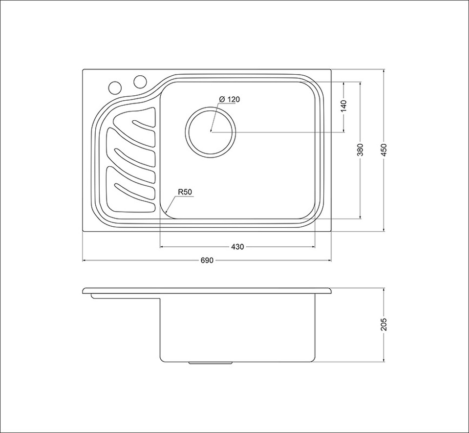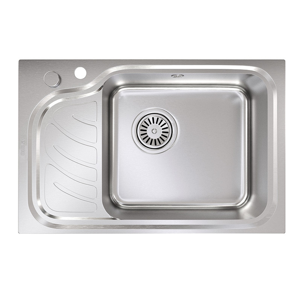 Мойка из нержавеющей стали AISI. AISI 304 содержит 18% хрома и 9% никеля, что обеспечивает максимальную устойчивость к коррозии. Шлифованная поверхность моек OULIN достигается по технологии Satin Finish Brushing. С обратной стороны, на дне чаши, находятся резиновые шумопоглащающие накладки и антиконденсатное покрытие, что делает мойку бесшумной.