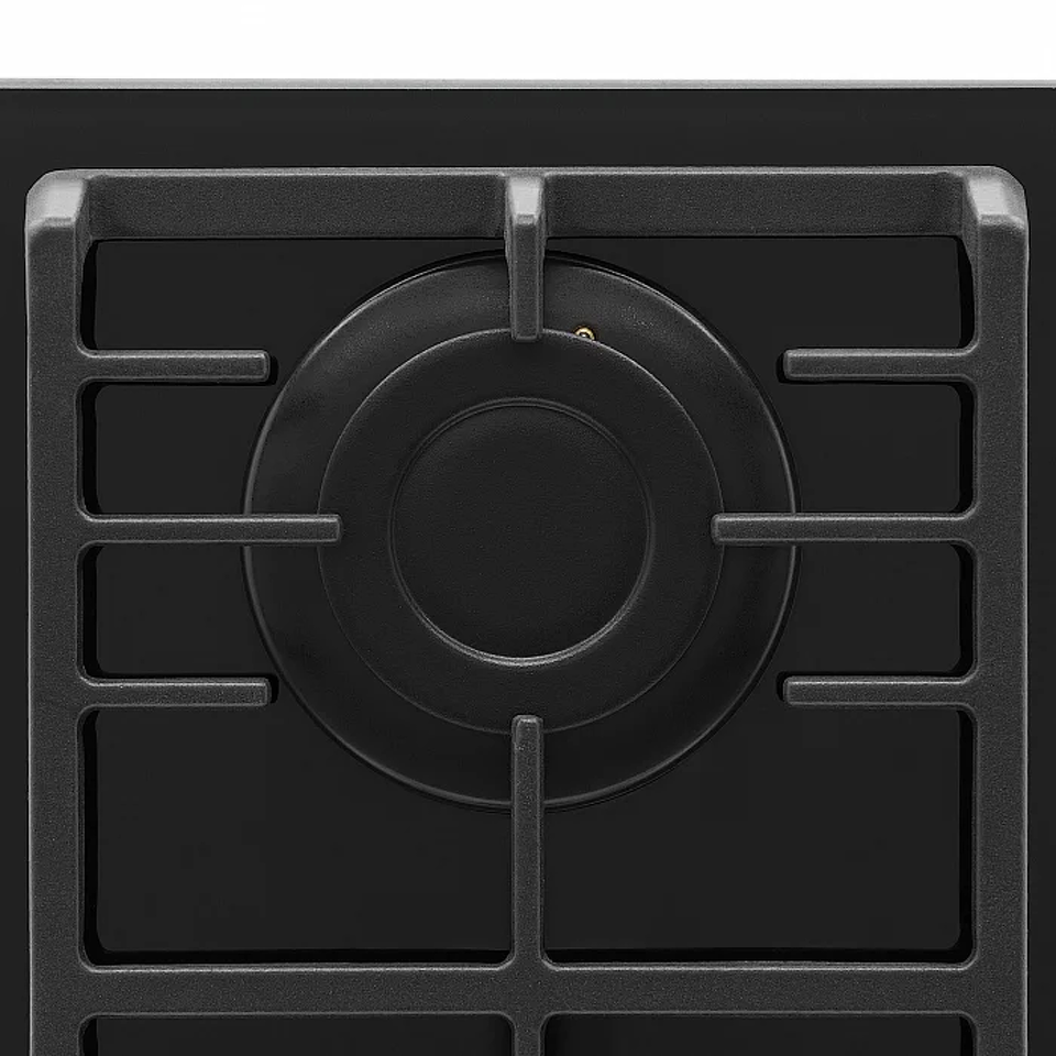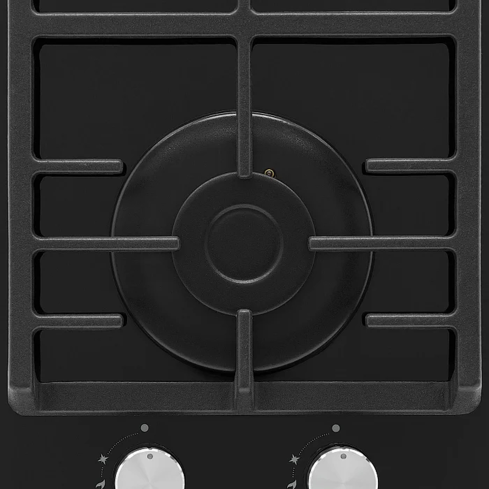 Газовая варочная панель GALILEO шириной встраивания 30 см отлично подойдет для небольшой кухни или для установки на даче - жиклеры для баллонного газа идут в комплекте. Модель выполнена из прочного закаленного стекла черного цвета и оснащена всеми необходимыми функциями безопасности и удобства: автоматический электроподжиг, "Газ-контроль", конфорка повышенной мощности, регуляторы из негорючего полимера. Для комфортного приготовления газовая поверхность GALILEO предусматривает устойчивую чугунную решетку, которая отличается высокой прочностью и надежностью.