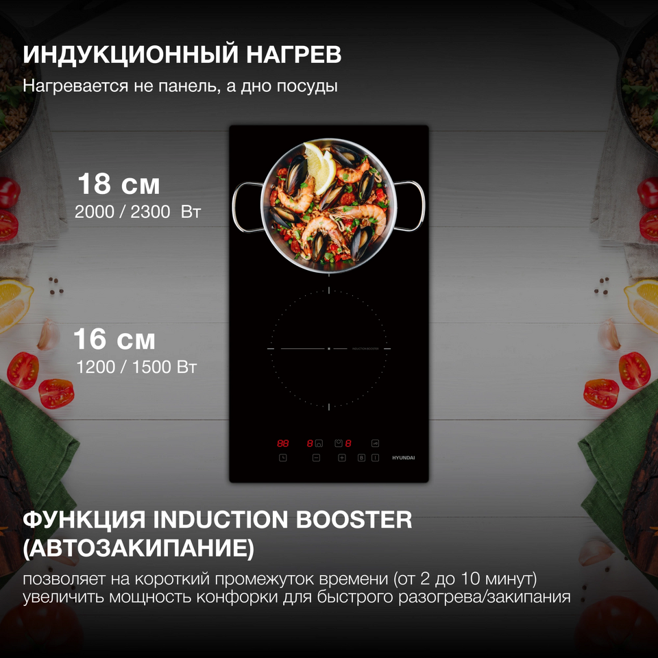 Фото Индукционная варочная панель домино Hyundai HHI 3710 BG