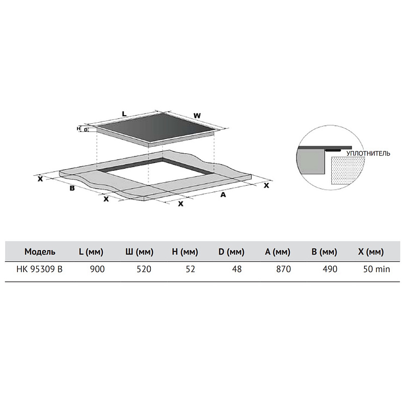 Размер варочной панели 90см