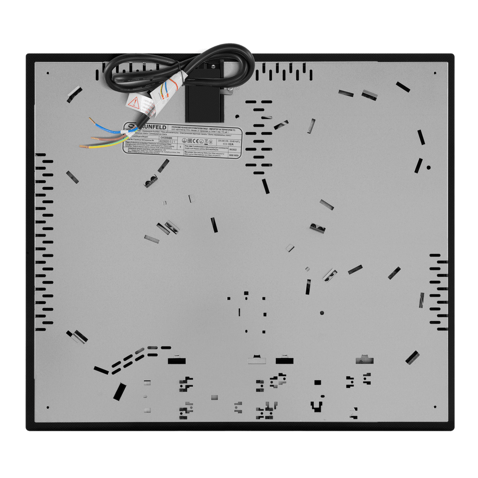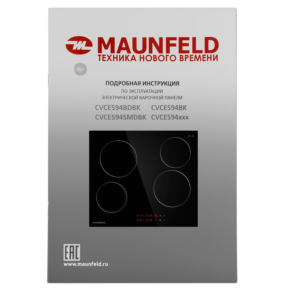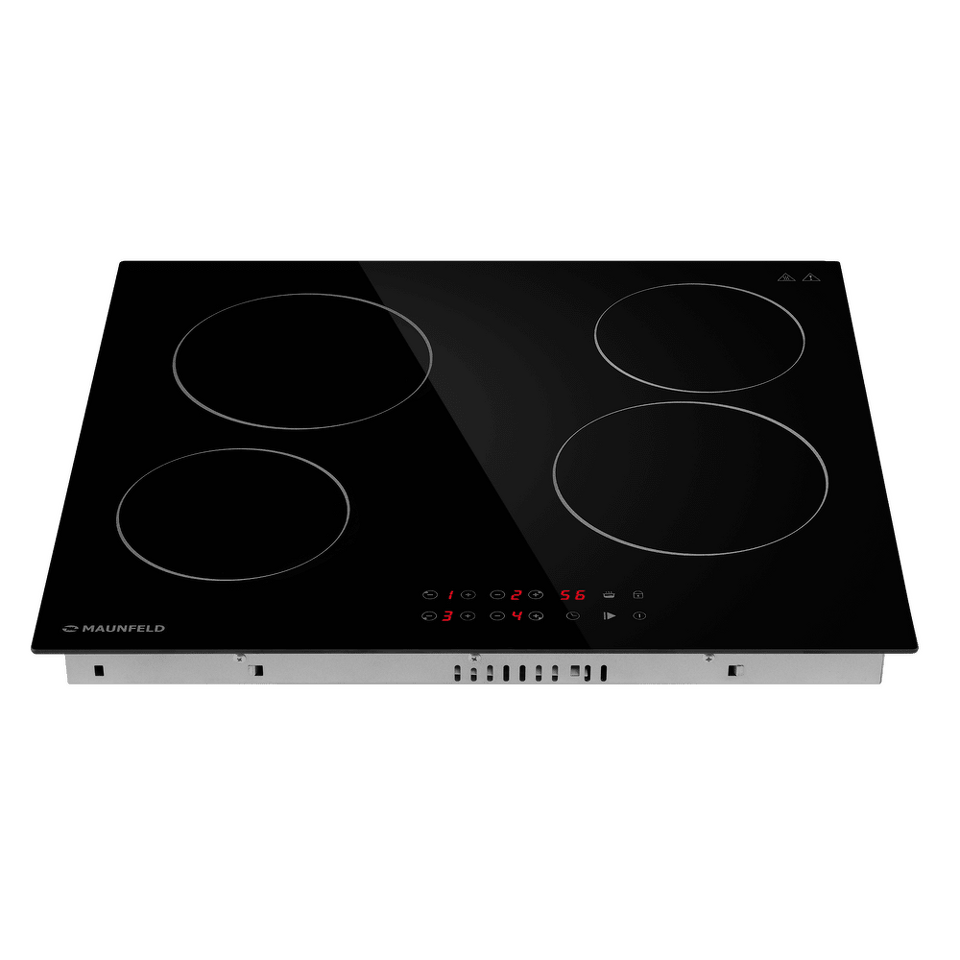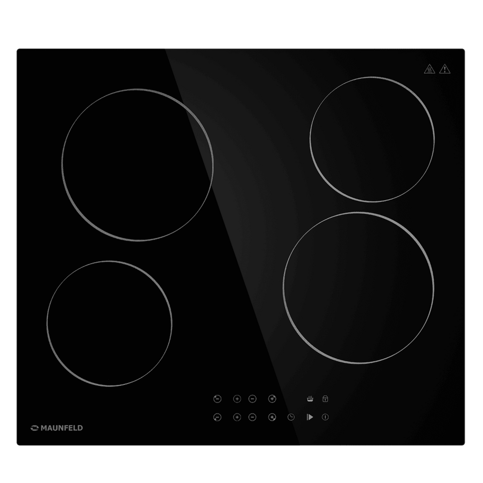 Стильная электрическая встраиваемая варочная панель шириной 59 см выполнена из ударопрочной стеклокерамики черного цвета. Благодаря идеальной гладкости и высокой износостойкости она легко очищается.