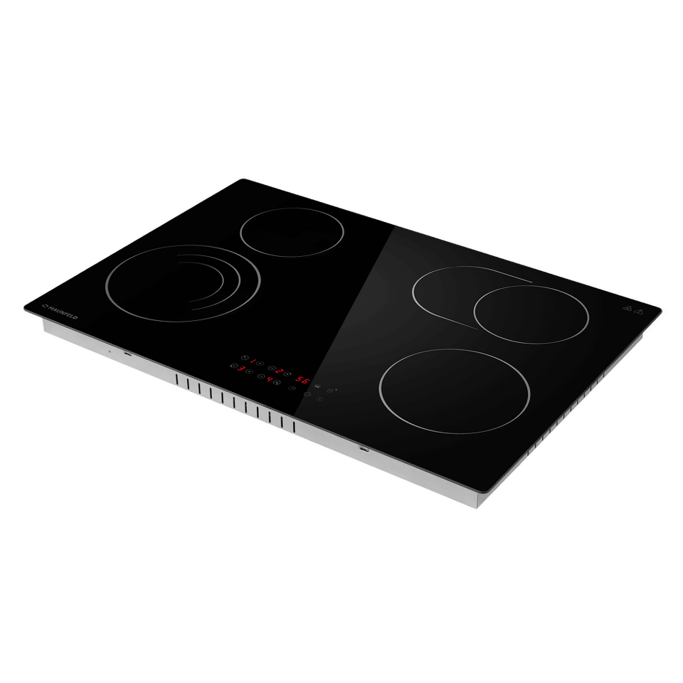 Стильная электрическая встраиваемая варочная панель шириной 77 см выполнена из ударопрочной стеклокерамики черного цвета. Благодаря идеальной гладкости и высокой износостойкости она легко очищается.