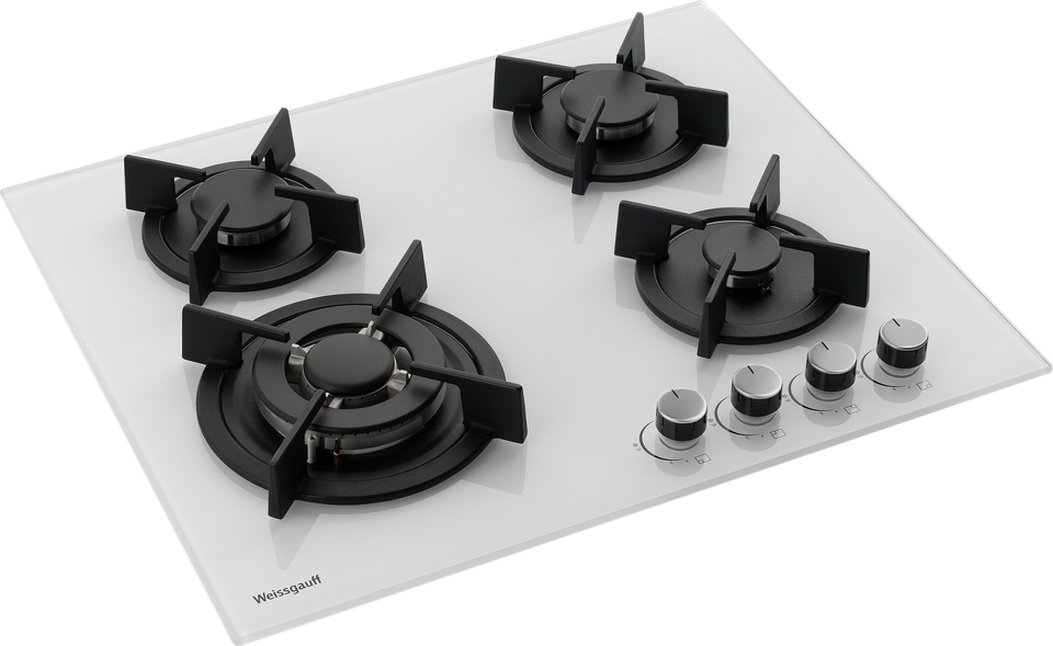 Встраиваемая независимая газовая панель Weissgauff шириной 60 см, исполненная в закалённом белом стекле - это стильное и компактное решение для вашей кухни!