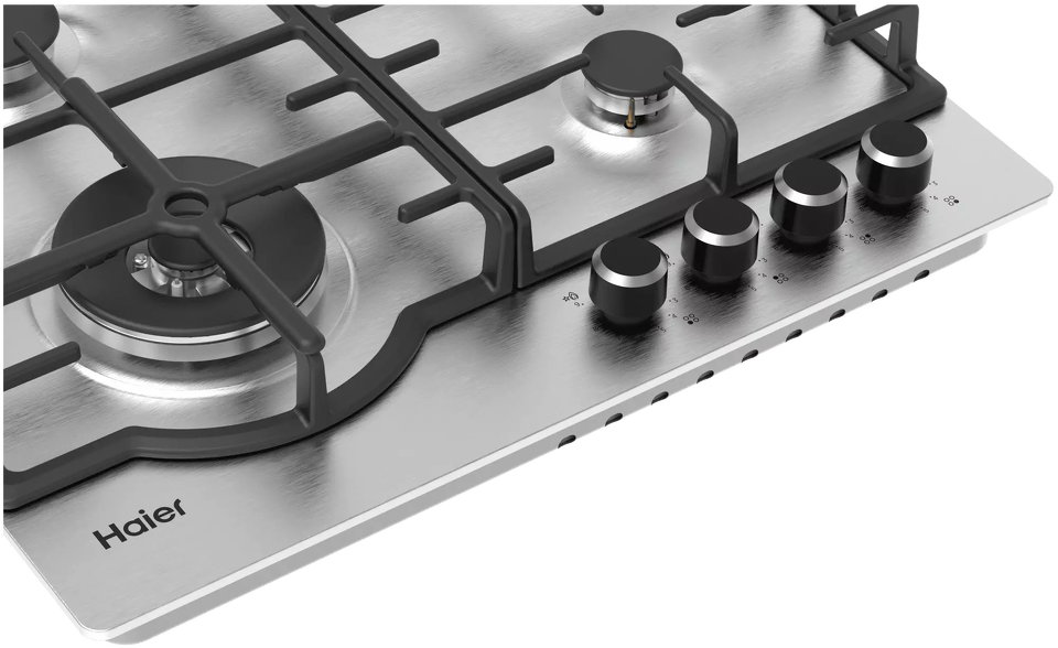 Газовая варочная панель Haier HHX-M64ROVX с основанием из высококачественной нержавеющей стали, выступающей над уровнем столешницы всего на несколько миллиметров, смотрится лаконично и стильно. Кроме классических конфорок разного диаметра, панель оснащена конфоркой супервысокой мощности 5 кВт, расположенной в передней части панели. На этой многоконтурной конфорке, которую также называют ВОК-конфоркой, можно приготовить не только очень объемные блюда, но также и блюда, требующие быстрого и мощного нагрева. В каждую конфорку интегрирован электроподжиг — пламя легко зажигается без спичек, а 9-ти ступенчатая регулировка пламени обеспечивает более точный контроль режима приготовления. Если вдруг пламя случайно погаснет, сработает функция «газ-контроль» — подача газа будет автоматически перекрыта. Чугунные решётки обеспечивают устойчивость посуды во время готовки, они съёмные — это облегчает уход. Поворотные регуляторы управления конфорками, изготовленные из металла, вынесены в переднюю часть панели. Haier HHX-M64ROVX — мощная, удобная, безопасная и практичная варочная панель для вашей кухни.