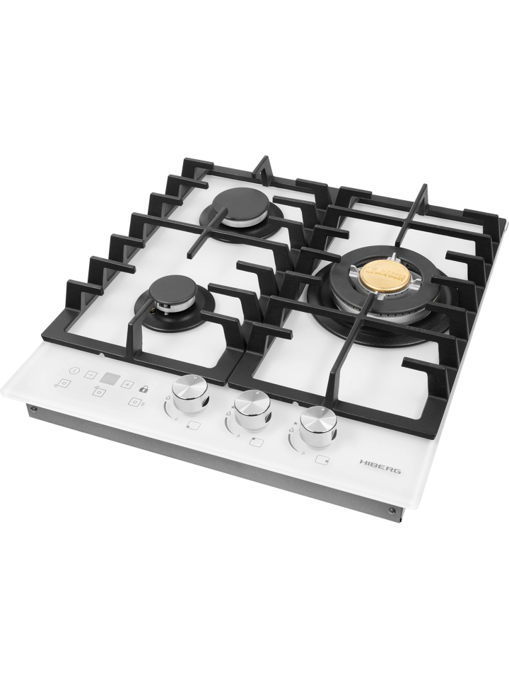 Газовая варочная поверхность HIBERG VM 4235 W– изысканное и функциональное решение для современной кухни. Прибор оборудован 3 газовыми конфорками с функциями автоматического электророзжига и газ-контроля для каждой.
