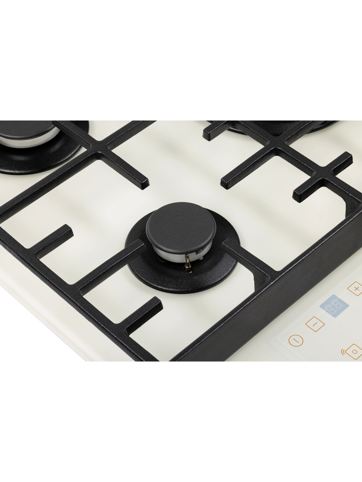 С помощью сенсорного таймера отключения газа можно контролировать время приготовления на нескольких конфорках сразу. Настройки устанавливаются с диапазоном от 1 до 99 минут. По истечении заданного времени конфорка отключается автоматически. При необходимости таймер можно выключить досрочно.