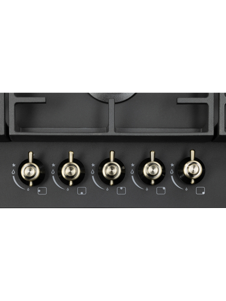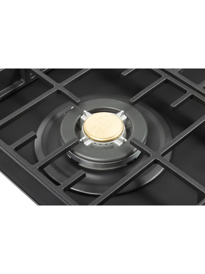 Конфорки газовой варочной панели HIBERG VM 9255 B отличаются диаметром и мощностью. Самая большая конфорка WOK с тройным рядом пламени и мощностью 3,4 кВт обеспечивает усиленный жар. Ее используют для быстрого и равномерного нагрева дна и стенок конусной посуды. Кроме азиатских блюд, на конфорке WOK можно быстро вскипятить воду, пожарить до румяной корочки мясо и рыбу с добавлением небольшого количества масла, подогреть еду.
