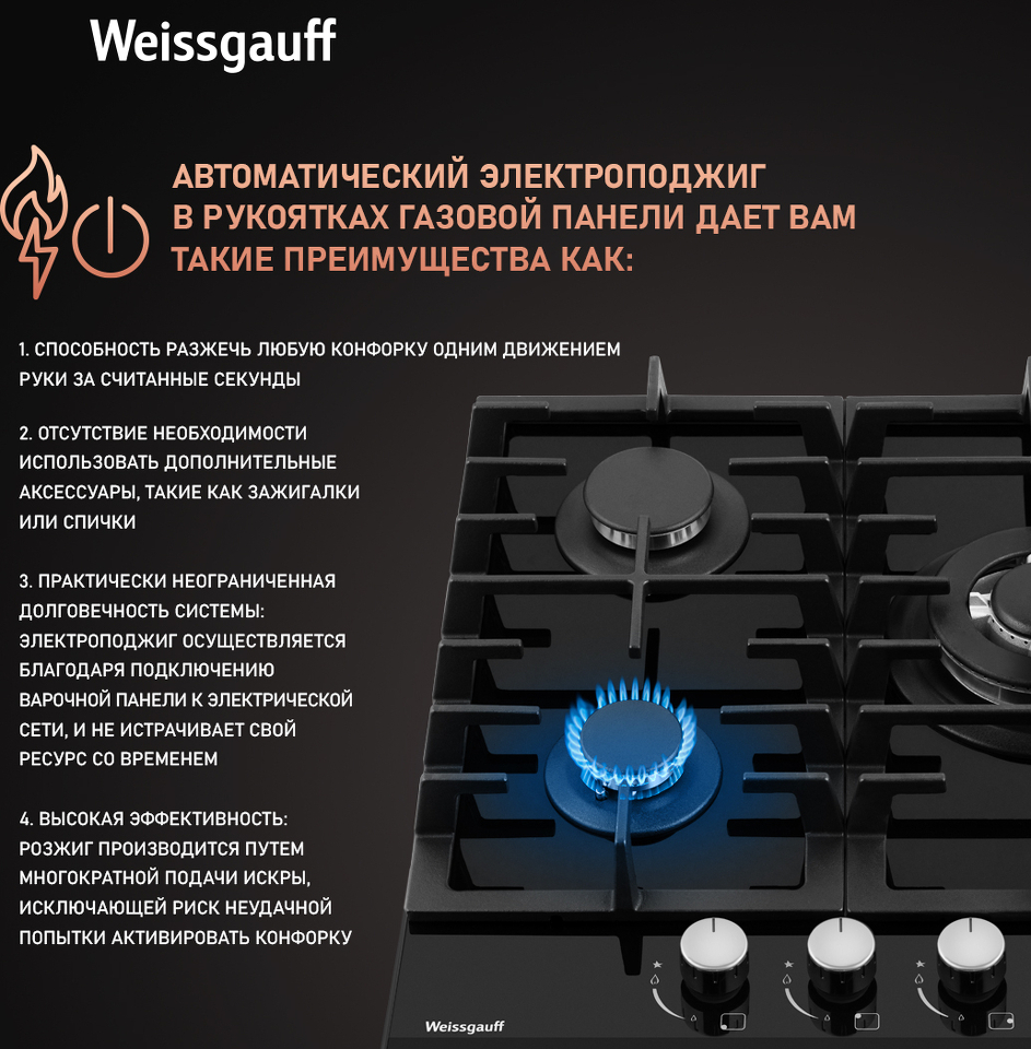 • Ширина 45 см позволит установить газовую панель Weissgauff даже в самую небольшую кухню!