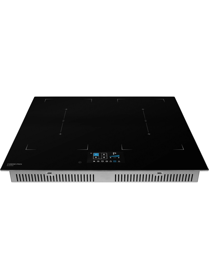 HIBERG i-MSD 6249 B — встраиваемая индукционная варочная поверхность с 4 конфорками и инверторным управлением, которая сочетает стильный дизайн, интеллектуальные функции и простоту использования.