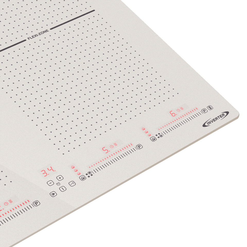 Flex Zone — представляет собой инновационную систему индукционных конфорок, которая обеспечивает полную свободу в использовании посуды любого размера, от турки до казана. Плита для нагрева задействует только ту поверхность, с которой соприкасается дно посуды и только там где вы ее поставили.