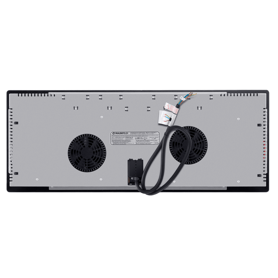 Узкая индукционная варочная поверхность с технологией непрерывного нагрева и двумя Flex Zone. Итальянская стеклокерамика ILVA Glass с белой LED индикацией управления.