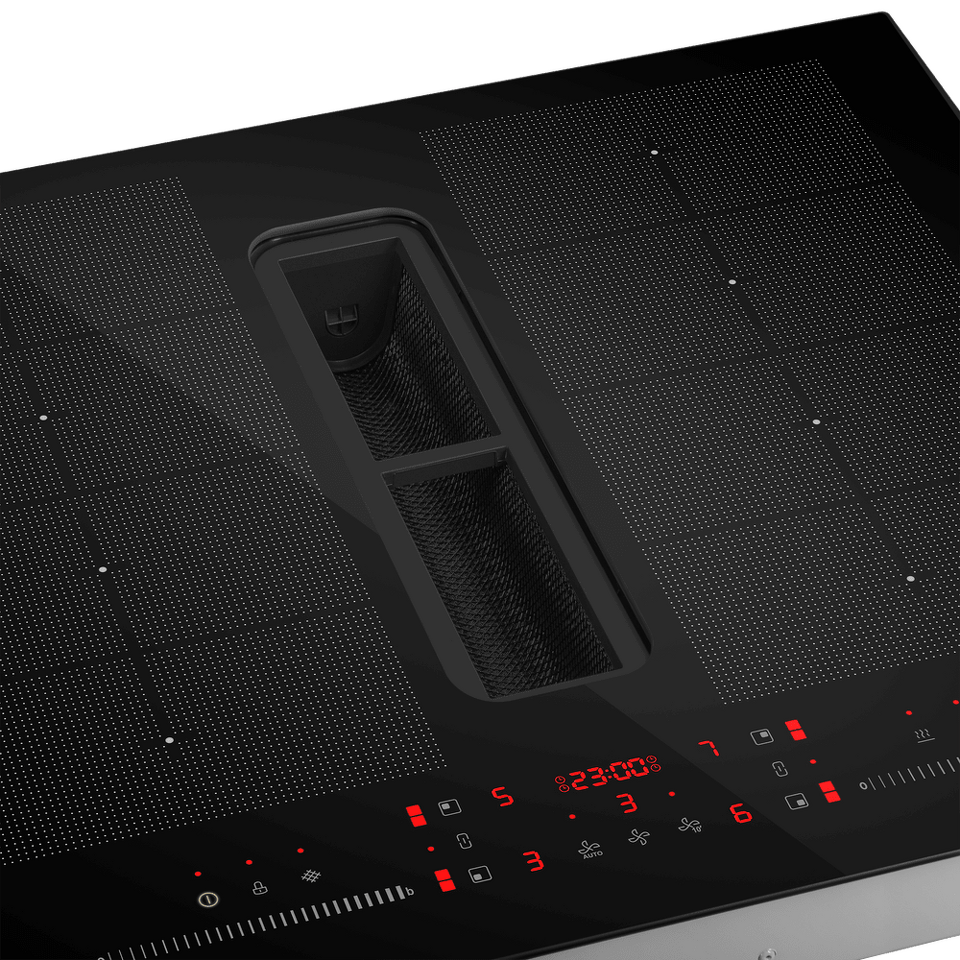 Пользовательский интерфейс позволяет с необычайной легкостью управлять варочной панелью и встроенным вентиляционным модулем. Достаточно одного движения кончика пальца, и вам станут доступны желаемые настройки температуры, скорости отвода воздуха и другие функции.