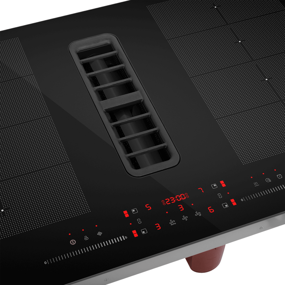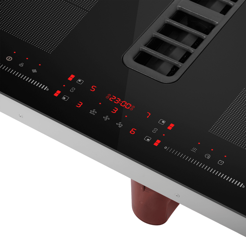 Пользовательский интерфейс позволяет с необычайной легкостью управлять варочной панелью и встроенным вентиляционным модулем. Достаточно одного движения кончика пальца, и вам станут доступны желаемые настройки температуры, скорости отвода воздуха и другие функции.