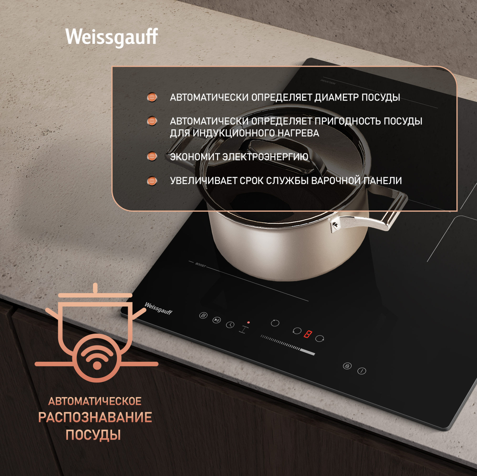 Индукционная панель Weissgauff, оснащенная свободной зоной Flex Zone, выводит на новый уровень понимание того, насколько эффективной может быть индукционная варочная поверхность шириной всего 45 см!