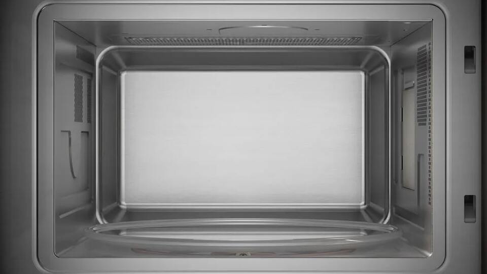 Внешняя эстетика поддержана продуманными эксплуатационными решениями: навесная дверца с боковым упором слева открывается кнопкой, а стеклянное поворотное блюдо диаметром 31.5 см обеспечивает равномерный прогрев продуктов. Внутреннее покрытие из нержавеющей стали не только выглядит презентабельно, но и упрощает уход, обеспечивая стойкость к пятнам и механическим воздействиям. Светодиодное освещение рабочей камеры гарантирует хорошую видимость готовящихся блюд без излишнего нагрева боксов, а вместительность и компактность сочетания камеры (20.8 х 32.8 х 36.9 см) делают прибор универсальным решением для семьи и небольших кухонь.