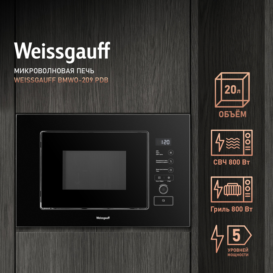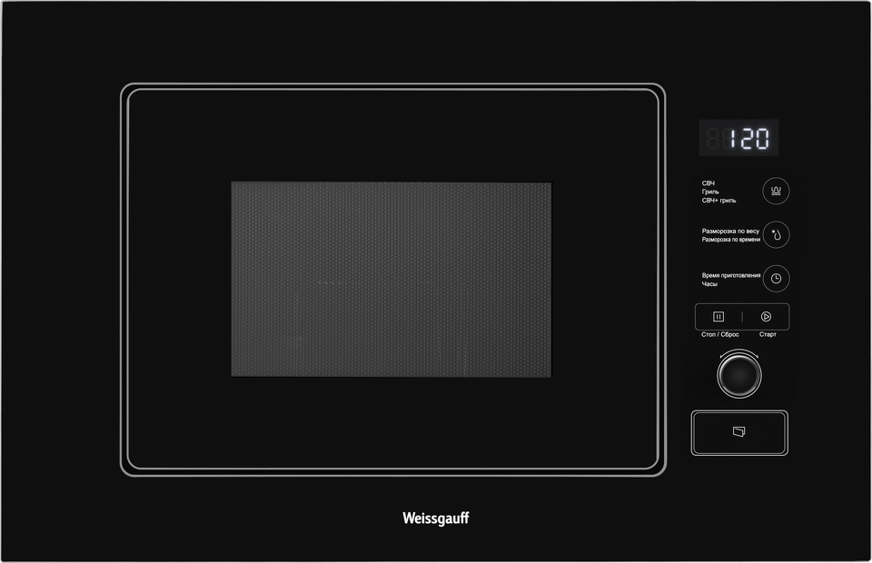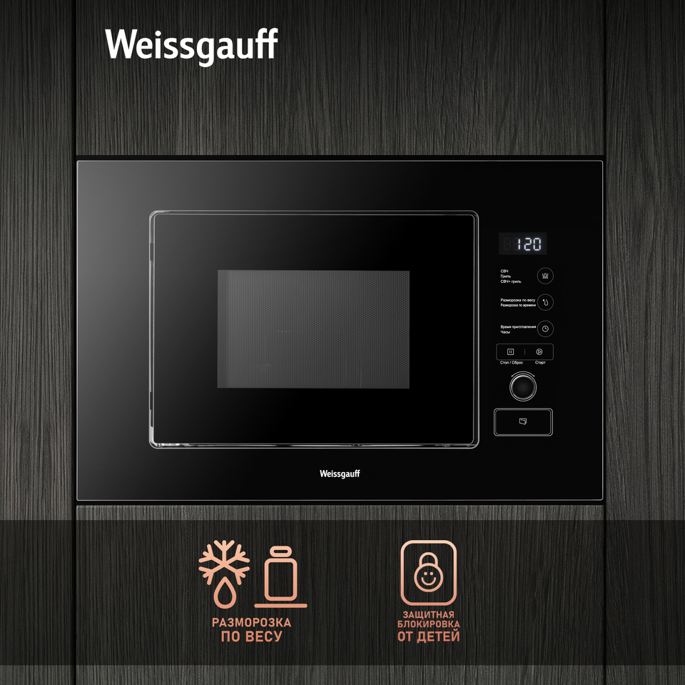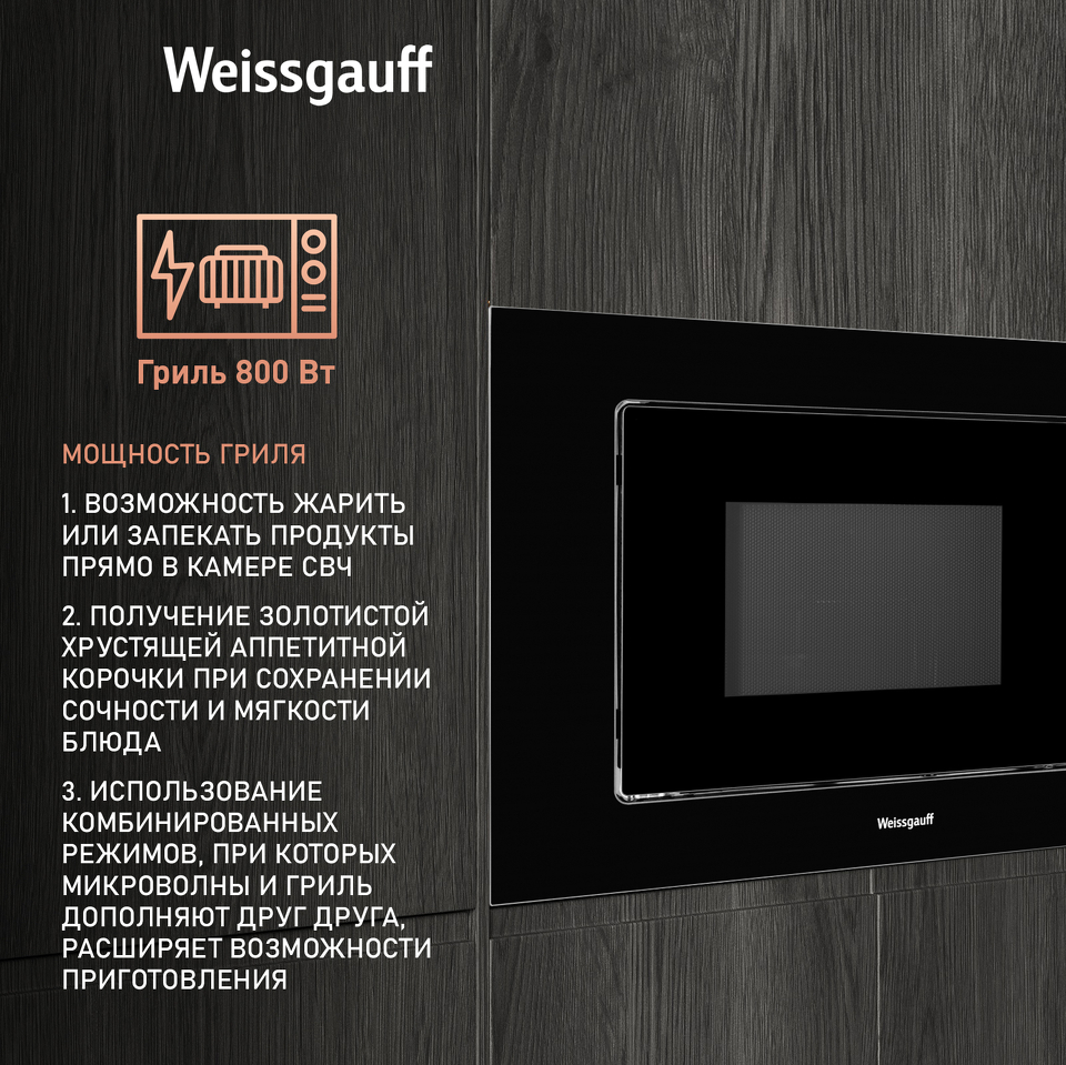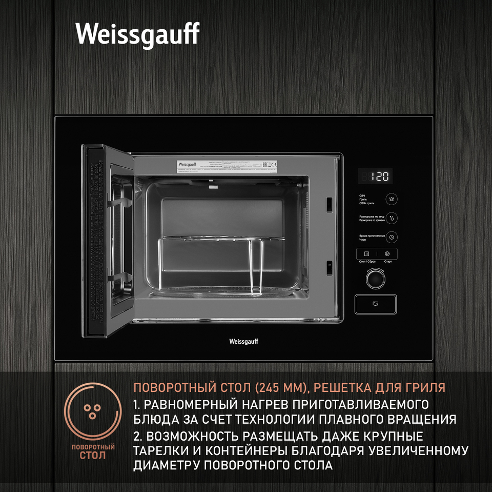 Встраиваемая микроволновая печь Weissgauff с объемом 20 литров, выполненная в черном цвете, равномерно разогревает еду при помощи поворотного стола, а также оснащена грилем с возможностью работы в комбинированном режиме!