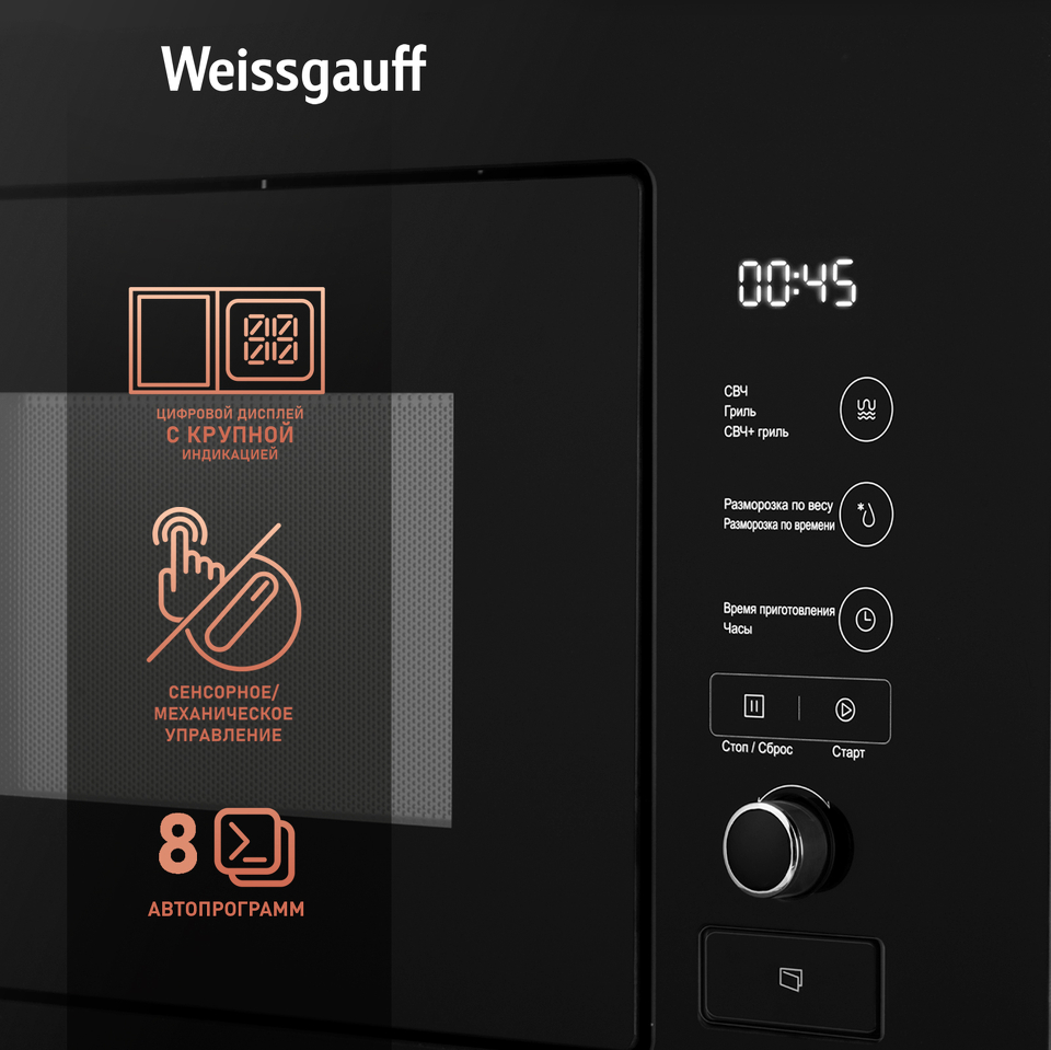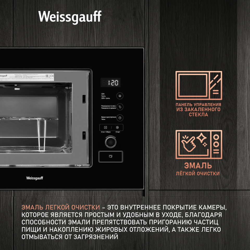 Дизайн, выполненный в закаленном стекле, станет финальным штрихом в совершенстве великолепного облика этой модели. Каждый раз, взаимодействуя с вашей микроволновой печью от Weissgauff, вы будете чувствовать, что это не только функциональное устройство, но и настоящее украшение вашей кухни!