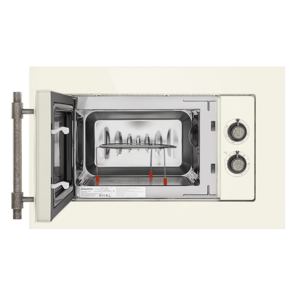 Особенности: без поворотного стола, фасад из прочного стекла, гриль, открытие дверцы в любом режиме, подсветка камеры, дверца навесная, механический таймер, звуковой сигнал, бронзовые цельнометаллические ручки управления.