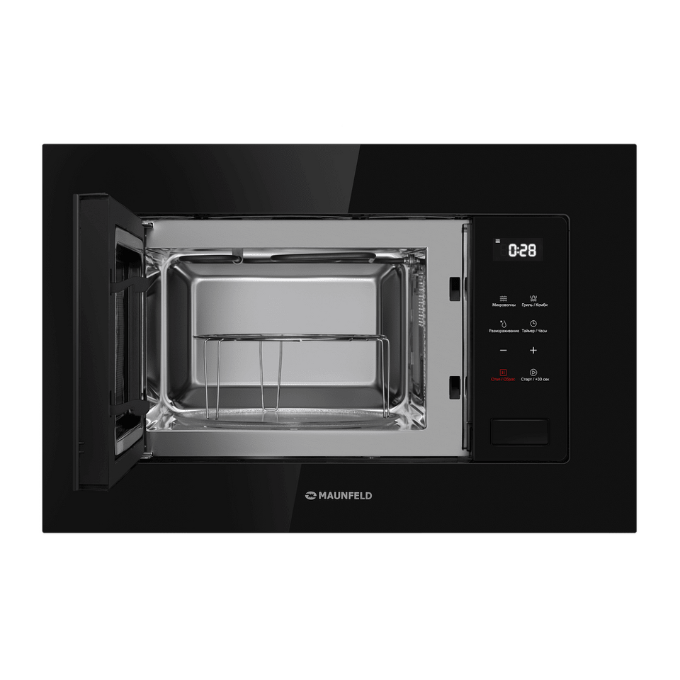 Микроволновая печь MAUNFELD MBMO820SGB10 комбинированного типа. Можно использовать только микроволны, только гриль или и то, и другое вместе. В СВЧ можно размораживать продукты по весу и времени.