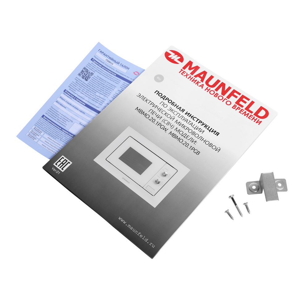 В комплекте к СВЧ идет вращающееся кольцо, стеклянный поддон и полный набор для установки (трафарет, зажим, болты, ориентир).