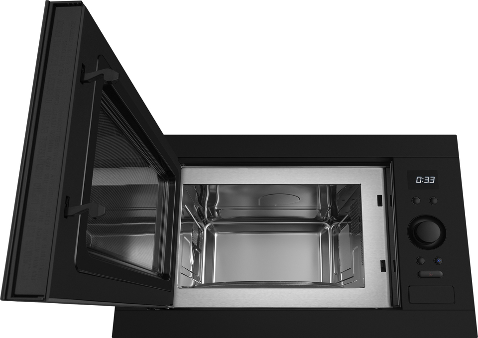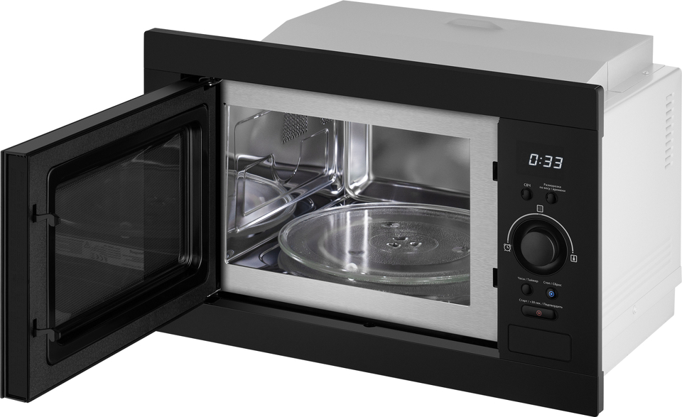 Встраиваемая микроволновая печь Weissgauff с объемом 25 литров, выполненная в черном цвете, равномерно разогревает еду при помощи поворотного стола, а также оснащена набором из 8 программ автоменю!