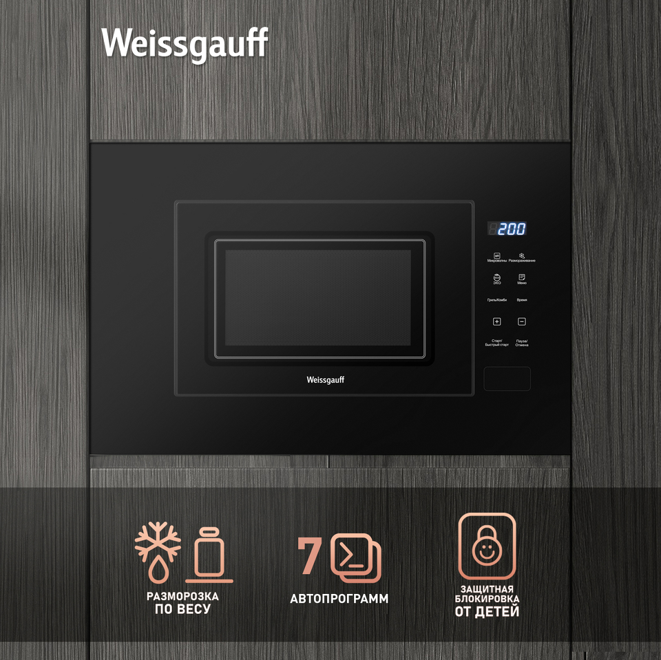 Дизайн, выполненный в черном цвете, станет финальным штрихом в совершенстве великолепного облика этой модели. Каждый раз, взаимодействуя с вашей микроволновой печью от Weissgauff, вы будете чувствовать, что это не только функциональное устройство, но и настоящее украшение вашей кухни!