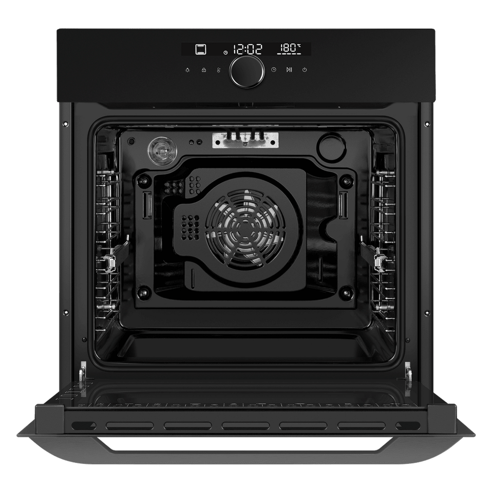 Объем 76 л при стандартных размерах 60 см позволяет готовить одновременно несколько блюд, разместив решетку или противень на одном из 6 уровней боковых направляющих. Два уровня оснащены удобными телескопическими направляющими. Внутреннее покрытие камеры выполнено из специальной легкоочищающейся эмали черного цвета.