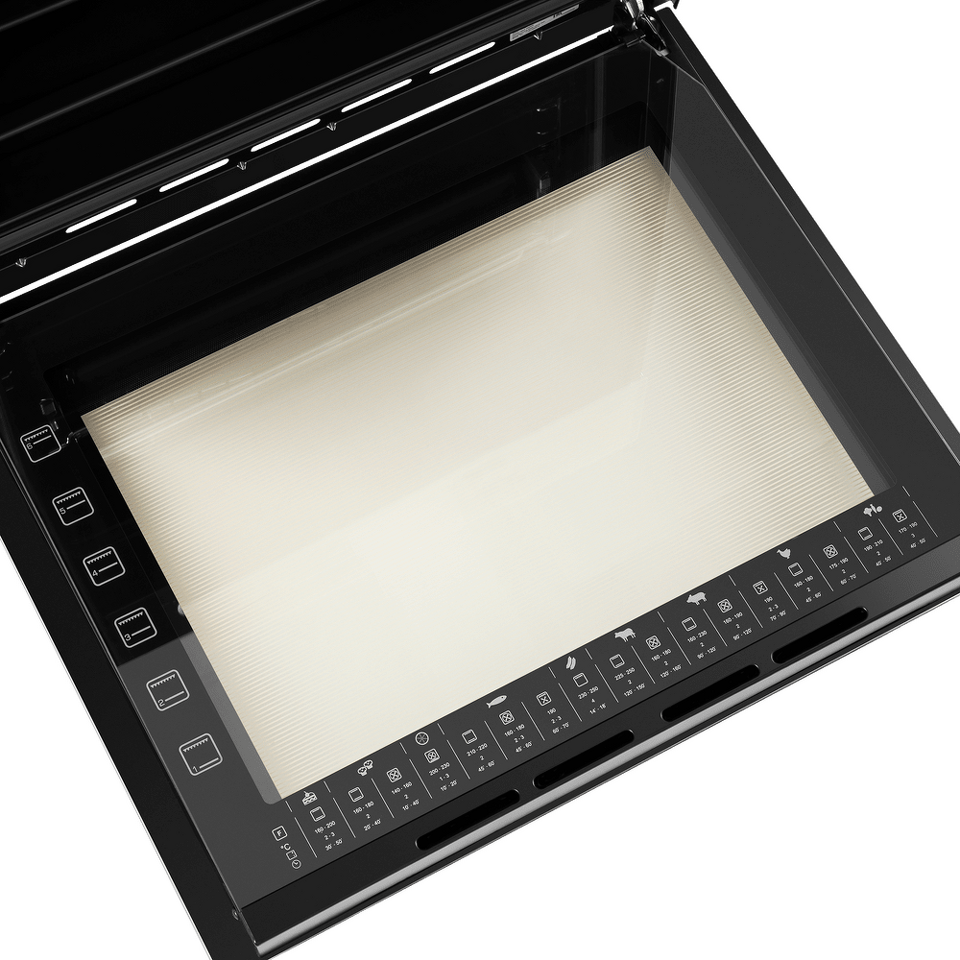 Тонировка внутреннего стекла дверцы создает визуальный эффект непрозрачности фасада: при выключенном освещении не видно посуду, находящуюся внутри духовой камеры, а при включенном освещении можно в деталях рассмотреть весь процесс готовки.