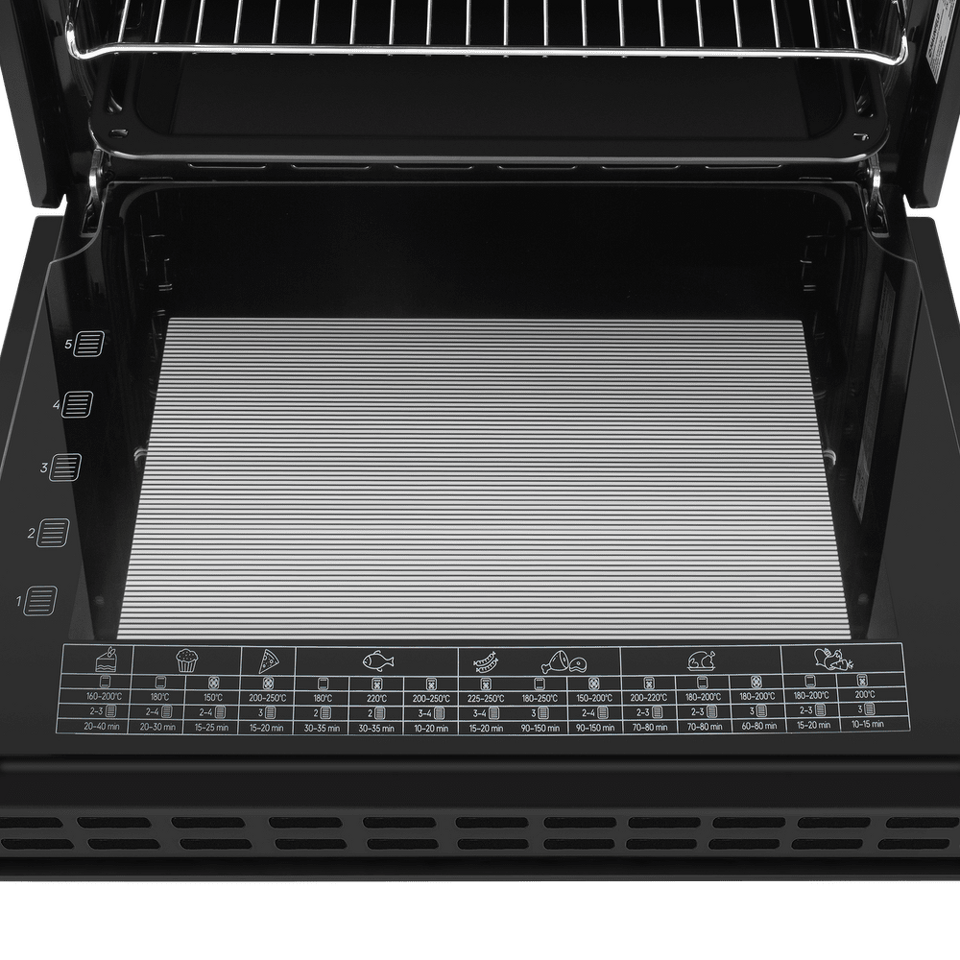 Объем 60 л при стандартных размерах 60 см позволяет готовить одновременно несколько блюд, разместив решетку или противень на одном из 5 уровней боковых направляющих.