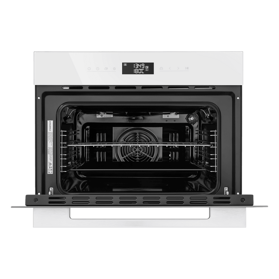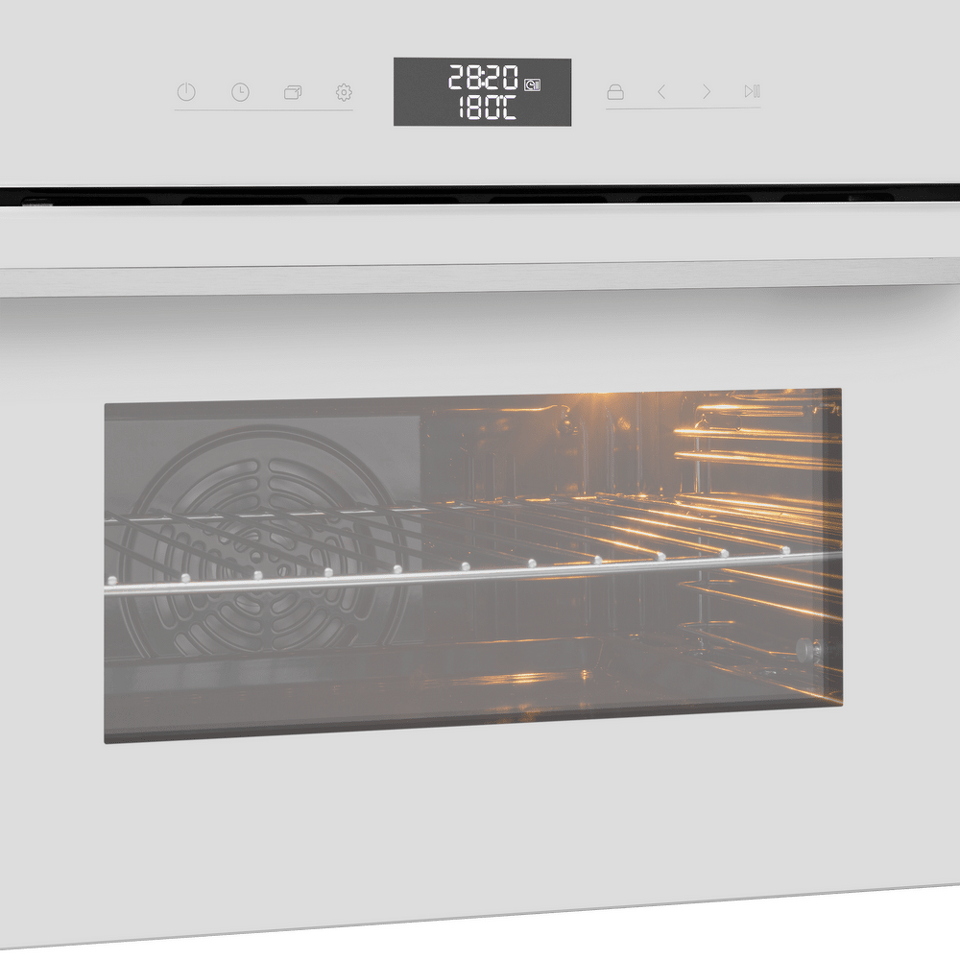 Фронтальная панель сделана из высококачественного жаропрочного стекла . Цельнометаллическая ручка дверцы из матированной нержавеющей стали лаконично поддерживает общий стиль и не нагревается во время готовки.