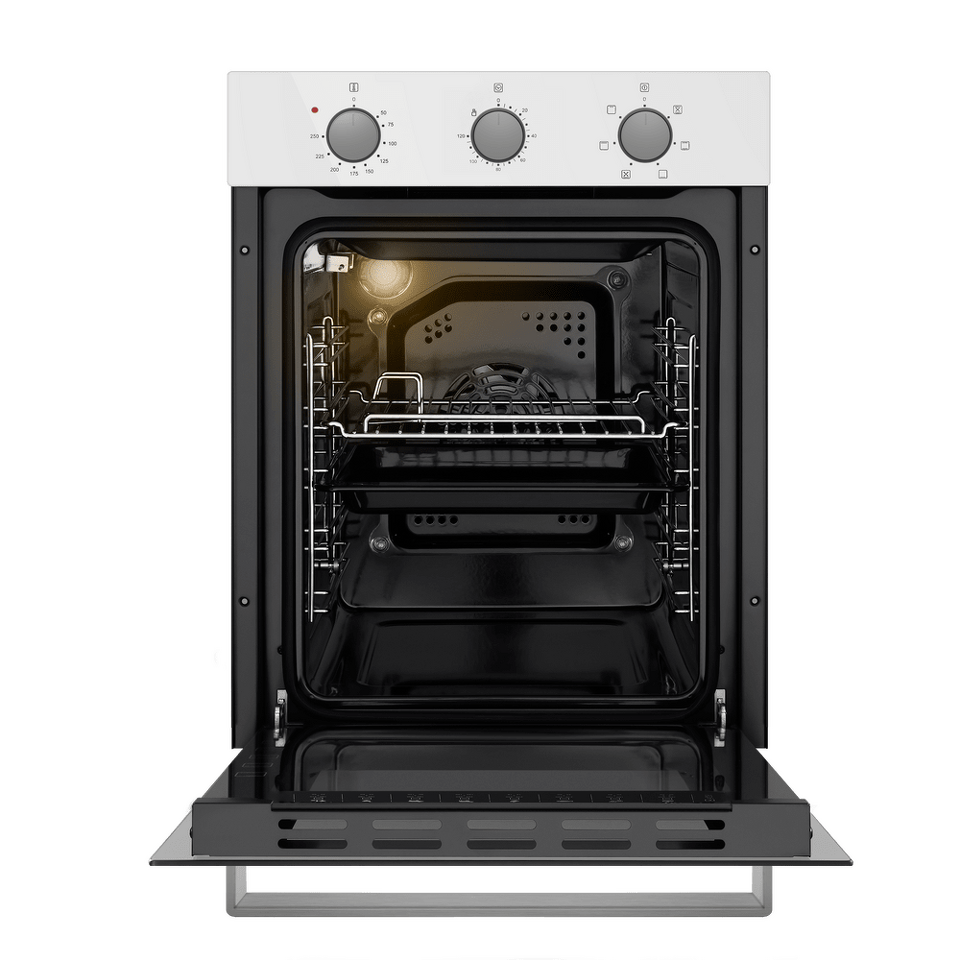Механическое управление работой духовки осуществляется утапливаемыми поворотными ручками. Можно установить таймер (до 120 мин), выбрать температуру (50°-250°C) и один из 6 режимов работы: традиционный нагрев, большой гриль, конвекция с нижним нагревом, нижний нагрев, конвекционный нагрев, малый гриль.