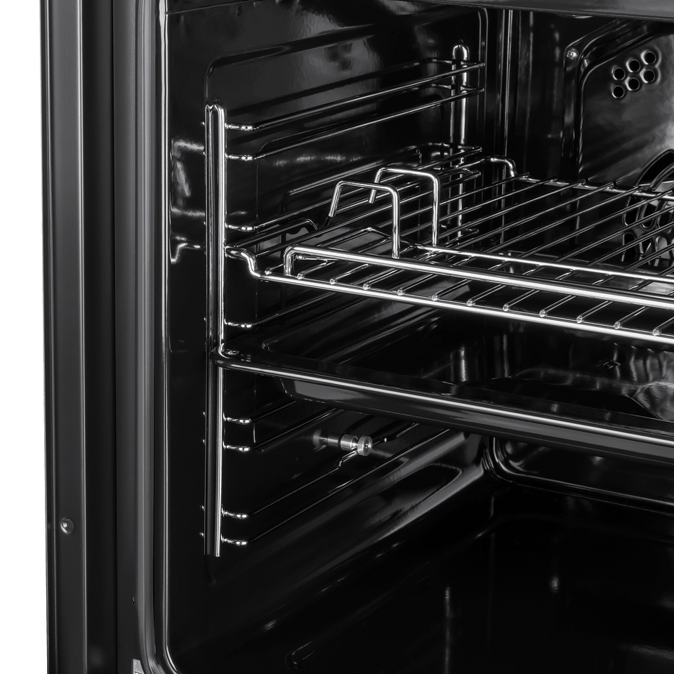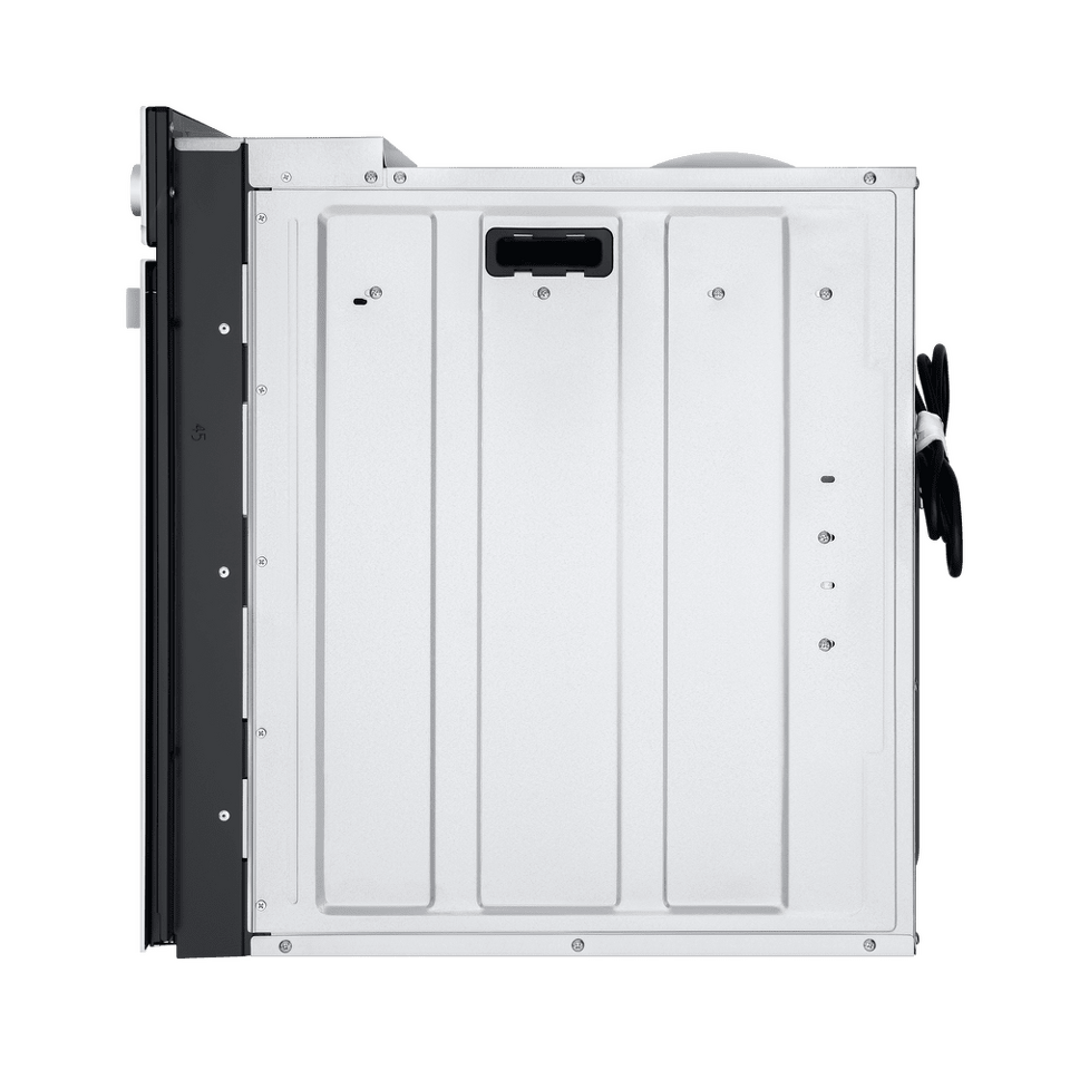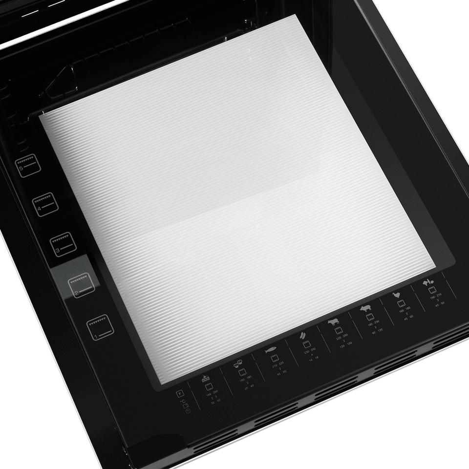 Фронтальная панель духовки сделана из высококачественного жаропрочного тонированного стекла черного цвета. Цельнометаллическая ручка дверцы и ручки управления остаются холодными в процессе готовки.