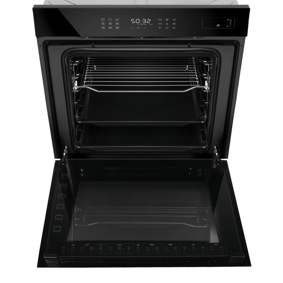 Стекло с тонировкой позволяет создавать визуальный эффект однородности стекла, при выключенном освещение внутреннее содержимое духовой камеры не видно, будь то сковородки, противни т.д, а при включенном освещение весь процесс приготовления виден без помех.