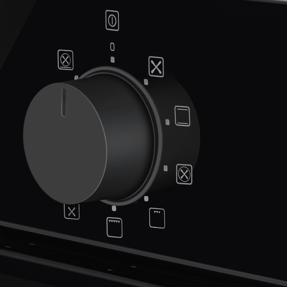 Комбинированное управление реализовано в виде сенсорного дисплея и поворотных ручек PUSH PULL, которые легким нажатием убираются внутрь корпуса. Можно выбрать режим работы, температуру (50°-250°C), установить таймер и блокировку от детей. В данной модели есть 9 режимов: верхний/нижний нагрев, усиленная конвекция, гриль/верхний нагрев/конвекция, разморозка, гриль/верхний нагрев, гриль, конвекция с нижним нагревом, нижний нагрев, интенсивная выпечка, освещение.