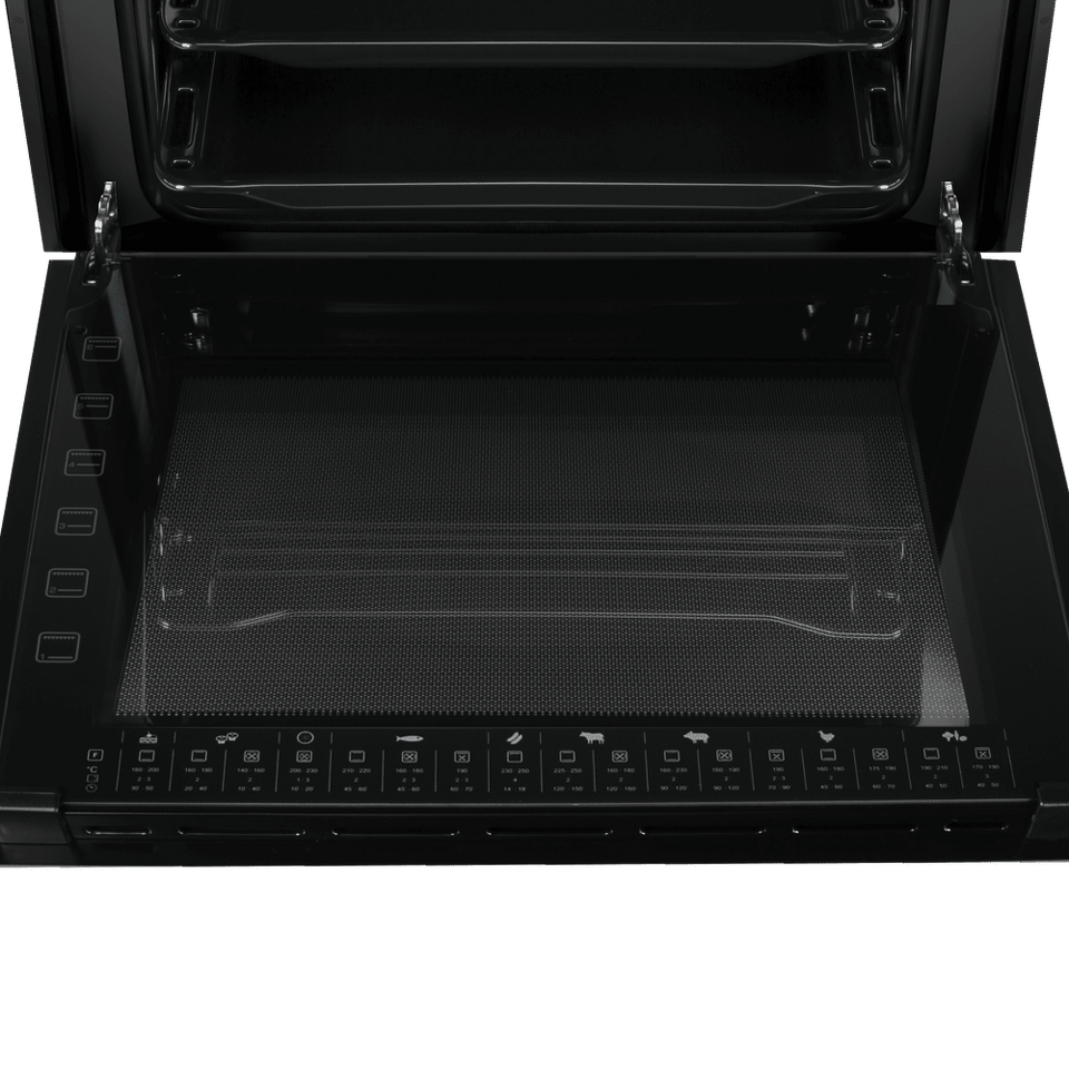 Фронтальная панель дверцы сделана из высококачественного жаропрочного стекла черного цвета, окрашенного по всему объему, что является отличительной чертой бытового прибора премиум-класса.