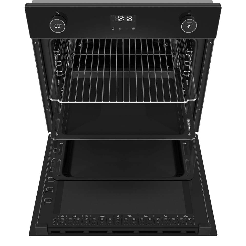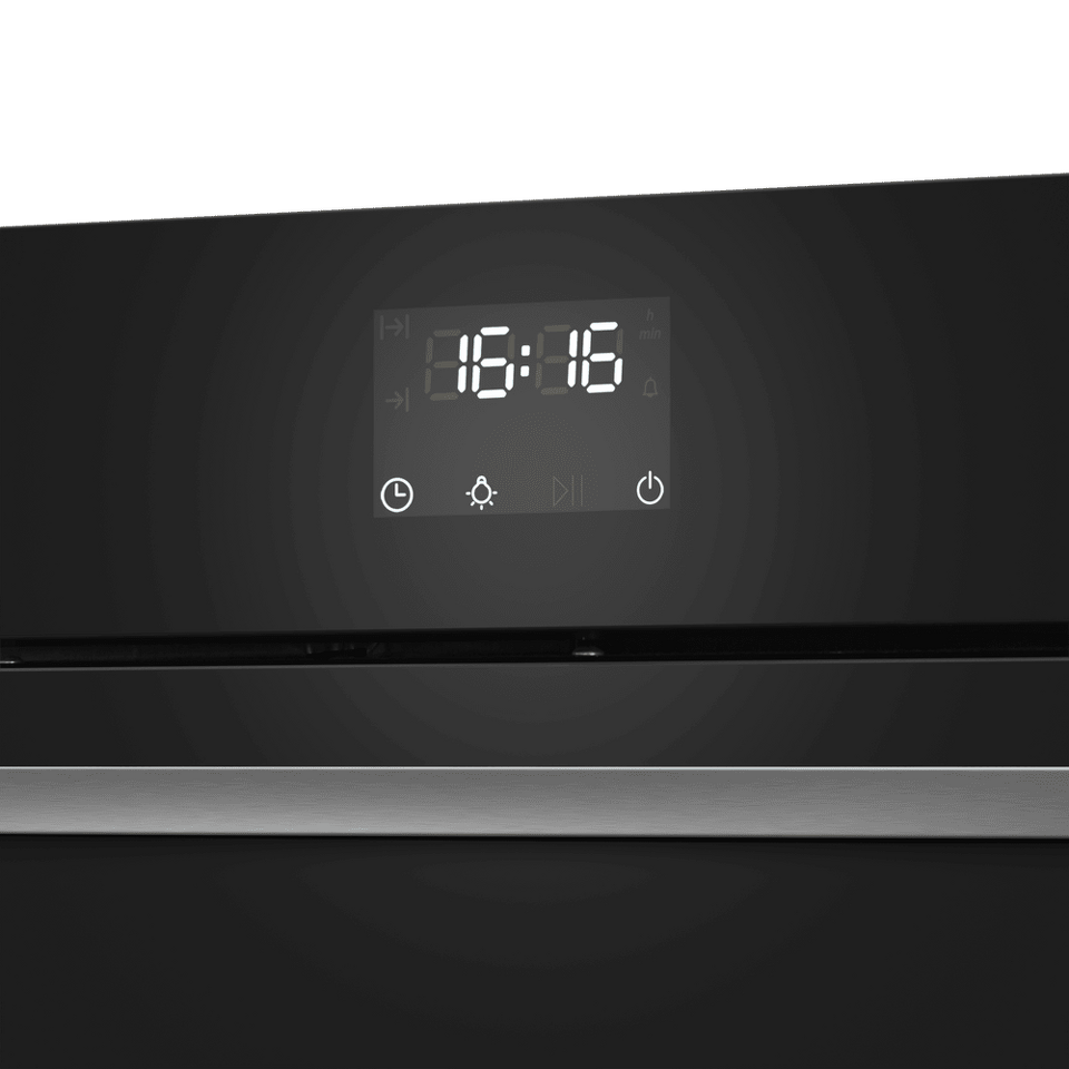 Простота управления, легкий уход за духовкой, дополнительная безопасность и защита от случайного изменения настроек — все это благодаря поворотными переключателями, которые не только обладают лаконичным дизайном, но и имеют встроенный дисплей для отображения температуры и режима приготовления.