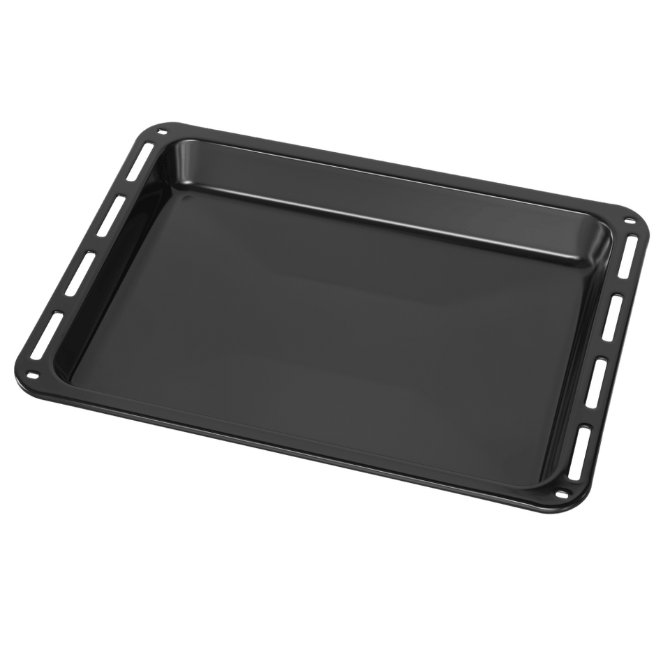 Наличие глубокого противня позволяет увеличить «полезный объём» духового шкафа. Высокие бортики глубокого противня не дают жиру разбрызгиваться и позволяют дольше сохранить блюдо горячим.