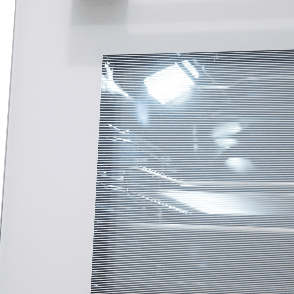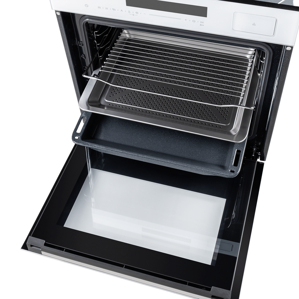 Стекло с тонировкой позволяет создавать визуальный эффект однородности стекла, при выключенном освещение внутреннее содержимое духовой камеры не видно, будь то сковородки, противни т.д, а при включенном освещение весь процесс приготовления виден без помех.