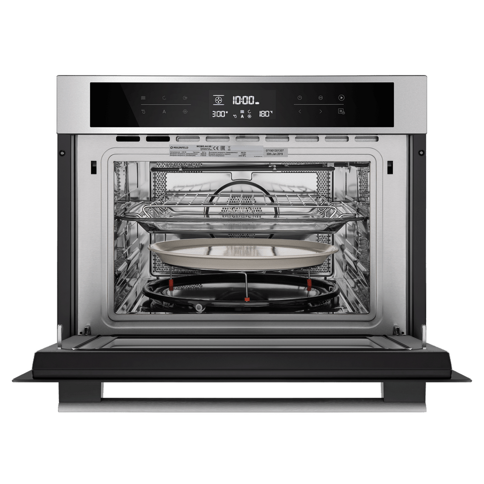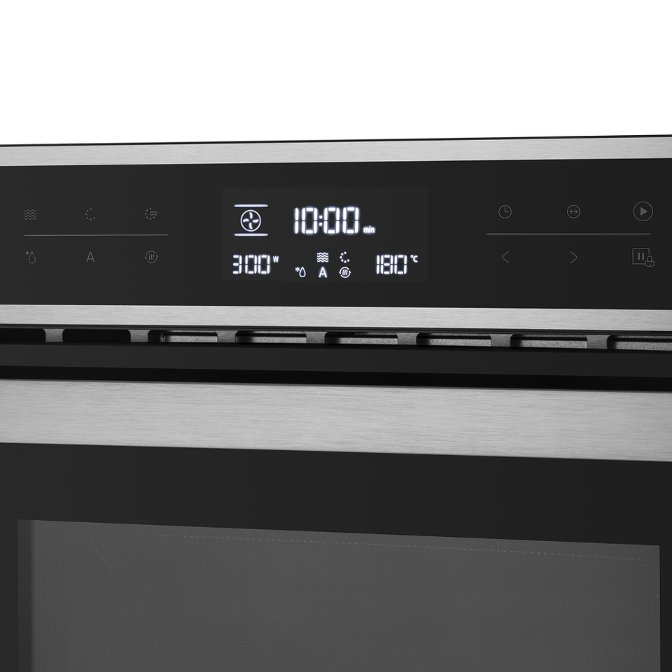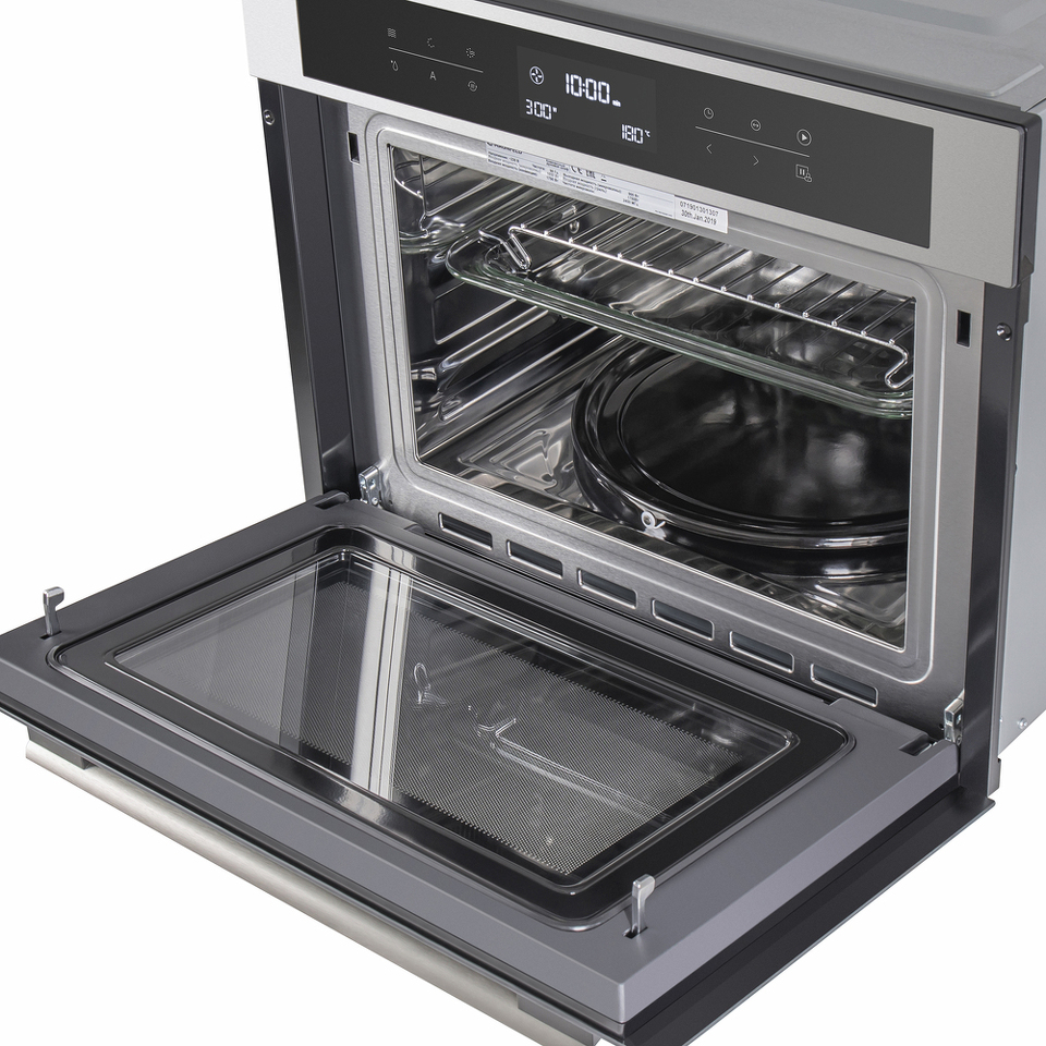 Сенсорное управление с дисплеем COLD WHITE позволит выбрать режим работы, температуру (50°-230°C), установить таймер и блокировку от детей. В данной модели предусмотрены следующие режимы работы: горячий воздух, горячий воздух и нижний нагрев, гриль (имеет 3 режима мощности), гриль+конвекция, горячий воздух + нижний гриль, микроволны, микроволны комби; автоматическая разморозка; предварительный разогрев, 13-программное Авто-меню.