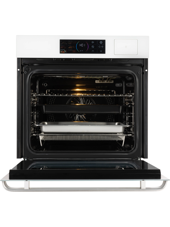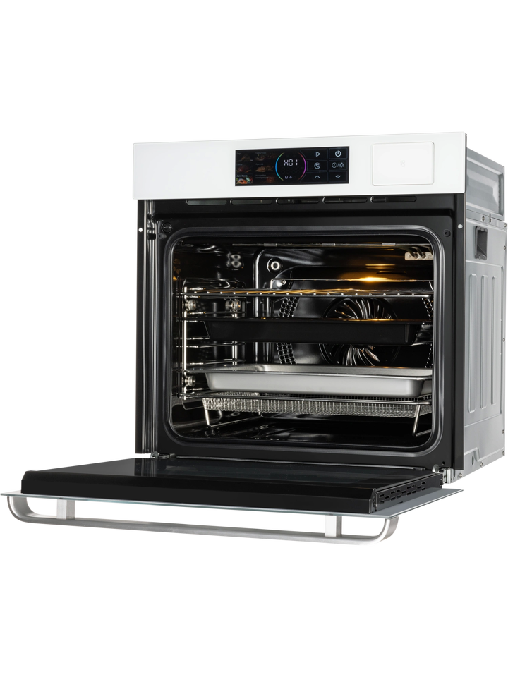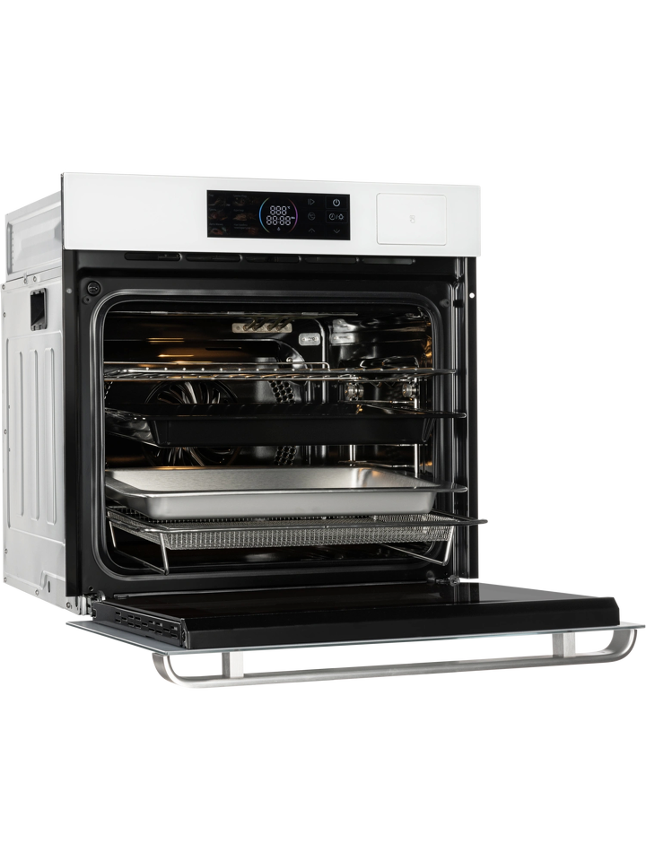 Встраиваемый электрический духовой шкаф HIBERG S-VM 6415 SMART — сочетание функциональности и стиля. Модель обладает всем необходимым для приготовления вкуснейших блюд и создания комфорта на кухне: большой объем 66 литров для приготовления нескольких блюд одновременно, сенсорное управление на стеклянном белом фасаде, современный цветной дисплей, инновационные функции готовки на пару, фритюр, гриль и сушка.Чувствительные кнопки цветного LED-дисплея позволяют легко настроить параметры и режимы работы, установить температуру верхнего и нижнего нагревателей по отдельности. Индивидуальная циркуляция воздушных потоков каждой температурной зоны не даст смешиваться запахам блюд.