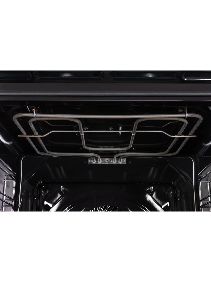 Электрическая духовка с кольцевым нагревательным элементом и функцией конвекции обеспечивает циркуляцию горячего воздуха и равномерное распределение жара. Такая комбинация позволит приготовить сочные блюда из мяса, птицы, рыбу с хрустящей корочкой, пропечь лазанью или получить воздушную румяную выпечку.
