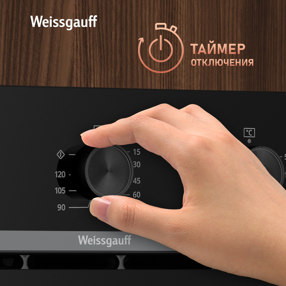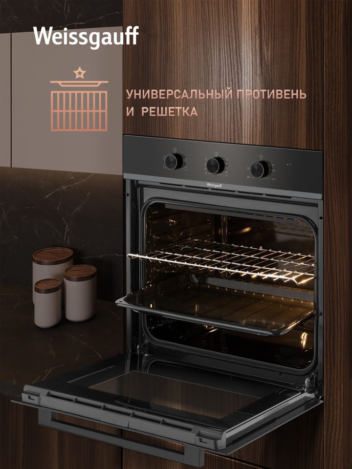 • Дизайн в черном цвете - станет финальным штрихом в совершенстве облика этой модели. Каждый раз, взаимодействуя с духовым шкафом от Weissgauff, вы будете в полной мере ощущать, как он способен нагревать не только еду, но и согревать душу, став настоящим сердцем вашего уютного домашнего очага.