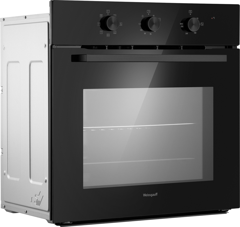 Электрический духовой шкаф от Weissgauff, выполненный в чёрном цвете, оснащённый механическими поворотными рукоятками Soft Switch, двойным остеклением дверцы и 8 режимами, буквально олицетворяет собой уверенность в надёжном и функциональном оснащении вашей кухни!