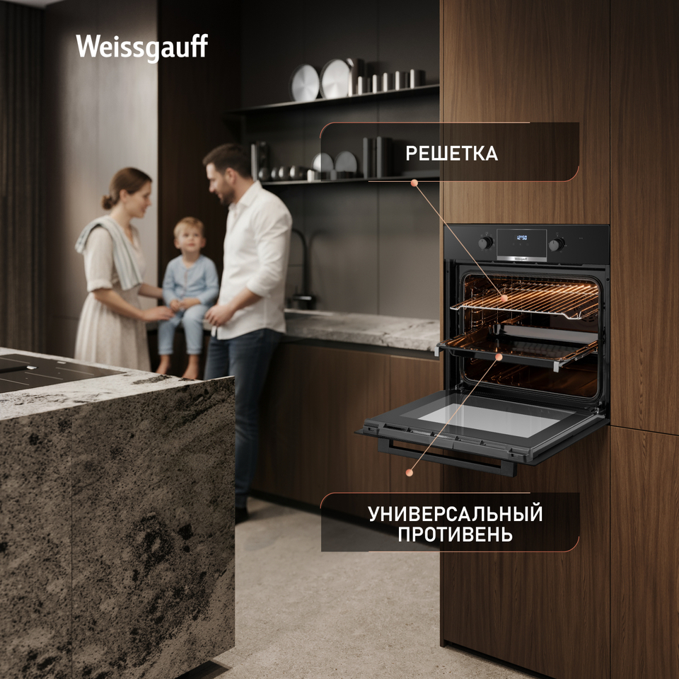 • Великолепный дизайн, станет финальным штрихом в совершенстве облика этой модели. Каждый раз, взаимодействуя с духовым шкафом от Weissgauff, вы будете в полной мере ощущать, как он способен нагревать не только еду, но и согревать душу, став настоящим сердцем вашего уютного домашнего очага.