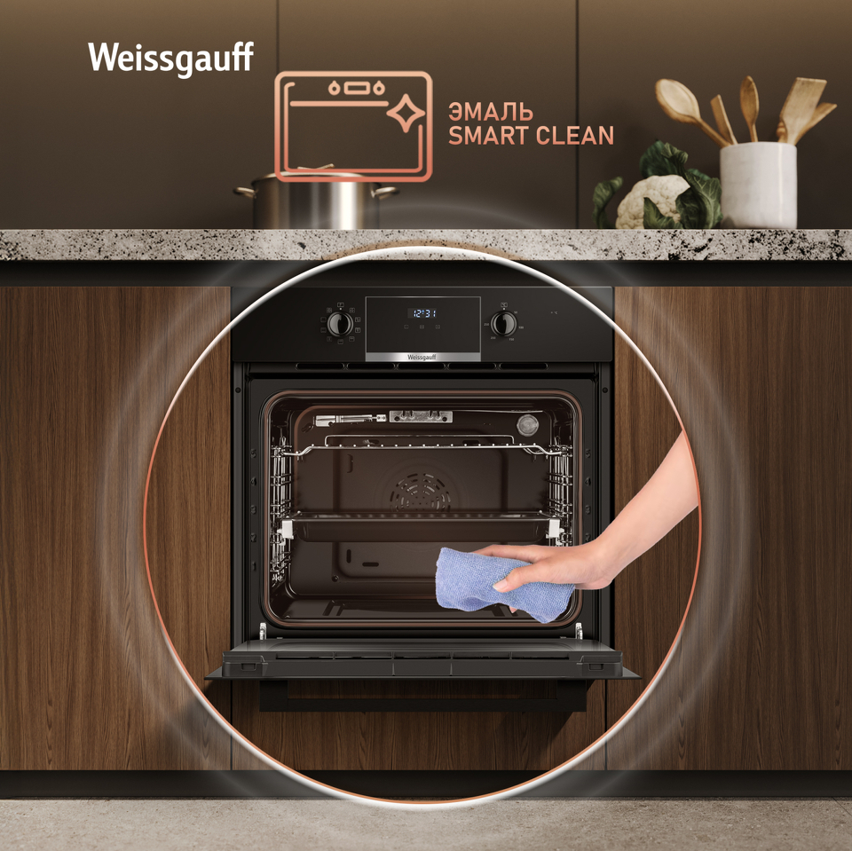 • Эмаль SMART CLEAN - это особое покрытие духового шкафа, призванное сделать процесс ухода за ним еще более простым и удобным. Благодаря эмали, изготовленной и нанесенной с применением сразу ряда инновационных технологий, ваш духовой шкаф будет оснащен самым настоящим высокоэффективным щитом, препятствующим накоплению жира, запаха и загрязнений, образующихся вследствие многократного приготовления еды.