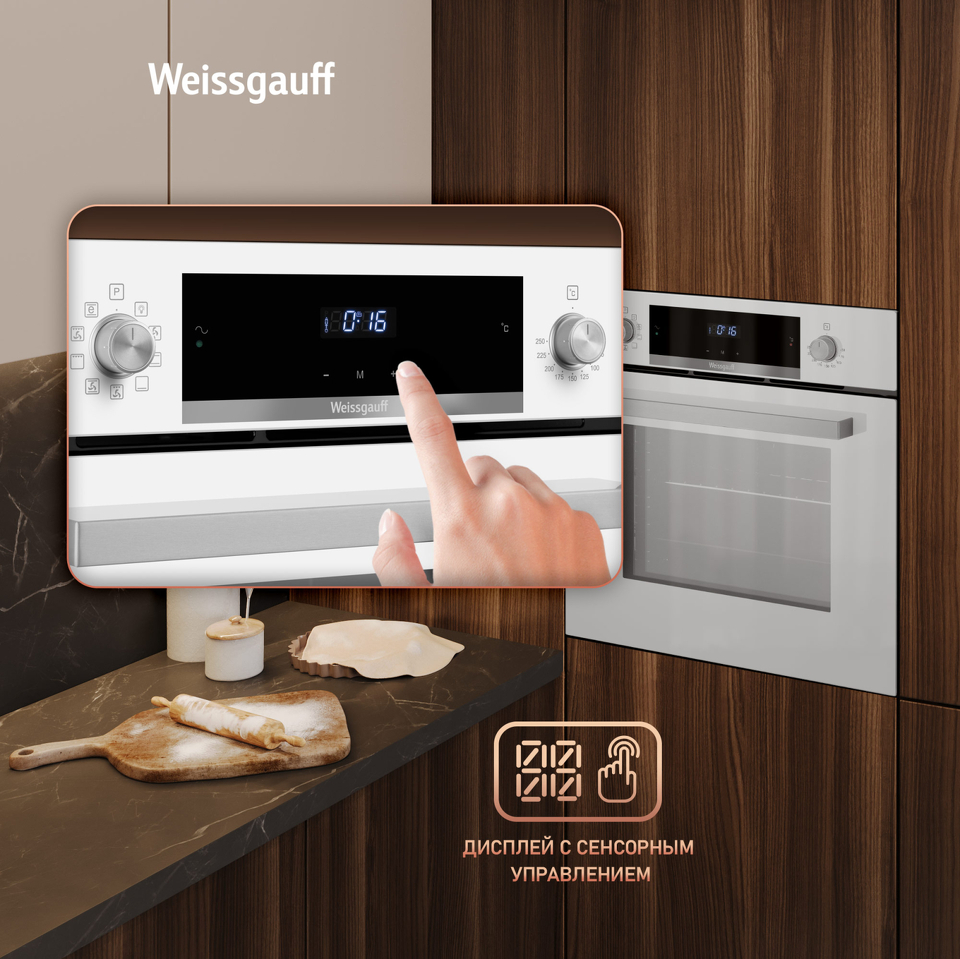 Новое поколение духовых шкафов от Weissgauff предлагает духовой шкаф, выполненный в великолепном дизайне белого закаленного стекла, имеющий дисплей с чувствительным сенсорным управлением. Тройное остекление дверцы отражает всю ту предусмотрительность, с которой мы подошли к её созданию. Утапливаемые рукоятки PIPO, дополняет богатый функционал, представленный сразу 9 режимами! Благодаря всему этому вы сможете полностью управлять процессом приготовления пищи, добиваясь идеального результата каждый раз!