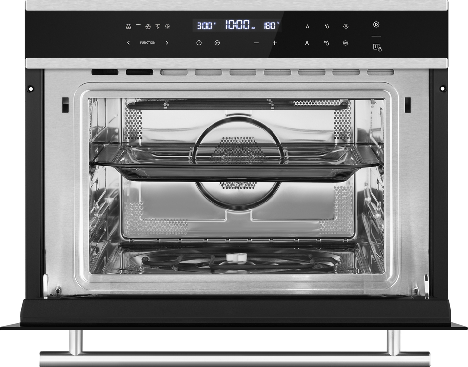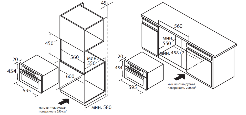 • Встраиваемый компактный духовой шкаф с микроволнами , который сочетает в себе сразу два полноценных устройства: духовой шкаф с конвекцией и грилем, а также микроволновую печь с отдельными набором настроек и возможностью использования комбинированного режима.