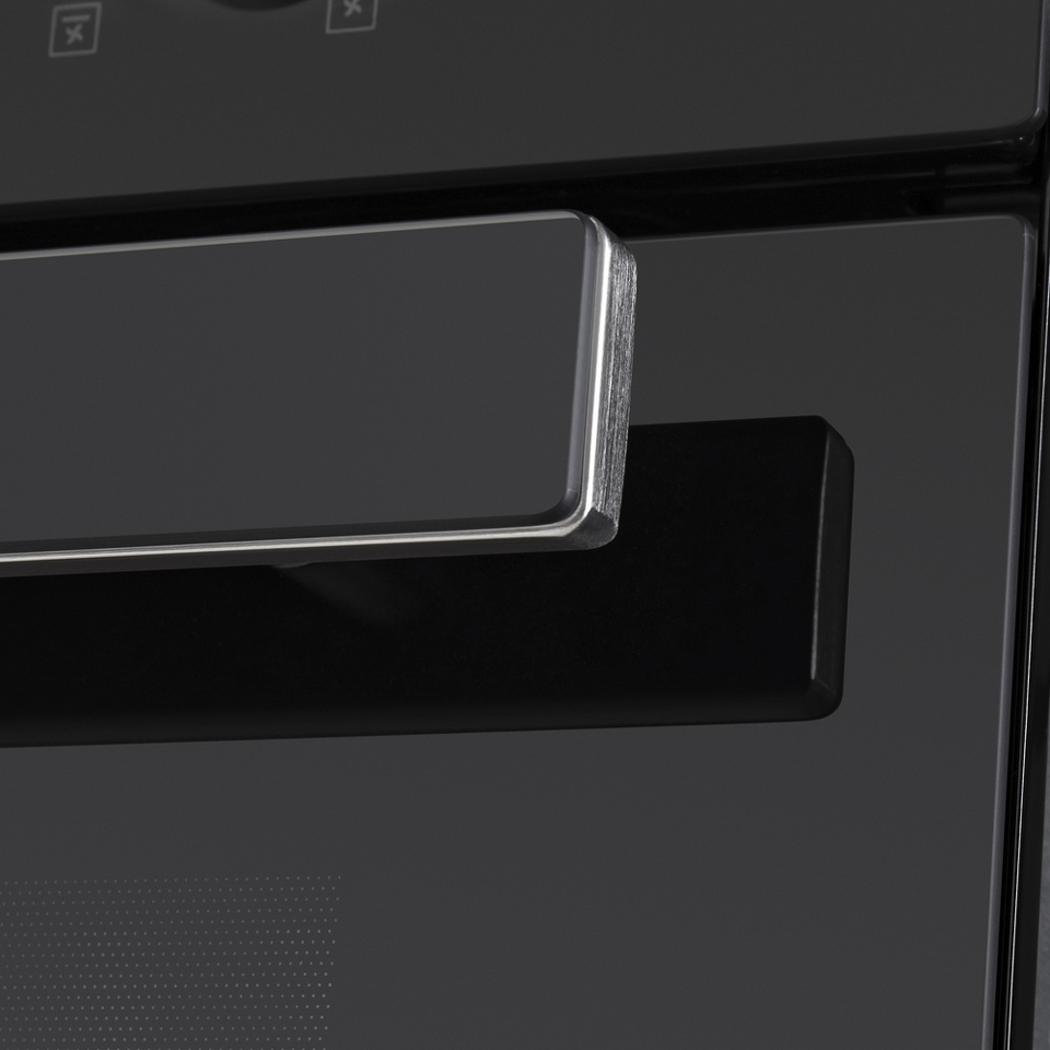 Фронтальная панель дверцы, лицевая часть блока управления и фасад ручки дверцы сделаны из высококачественного жаропрочного стекла черного цвета, окрашенного по всему объему, что является отличительной чертой бытового прибора премиум-класса.