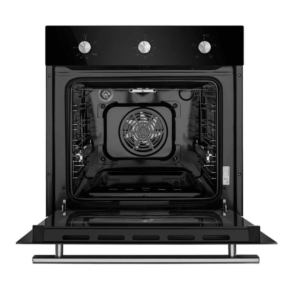 Объем 60 л при стандартной ширине 60 см позволяет готовить одновременно несколько блюд, разместив решетку или противень на одном из 5-ти уровней боковых направляющих. Один уровень оснащен удобными телескопическими направляющими. Внутреннее покрытие камеры выполнено из специальной легкоочищающейся эмали черного цвета.