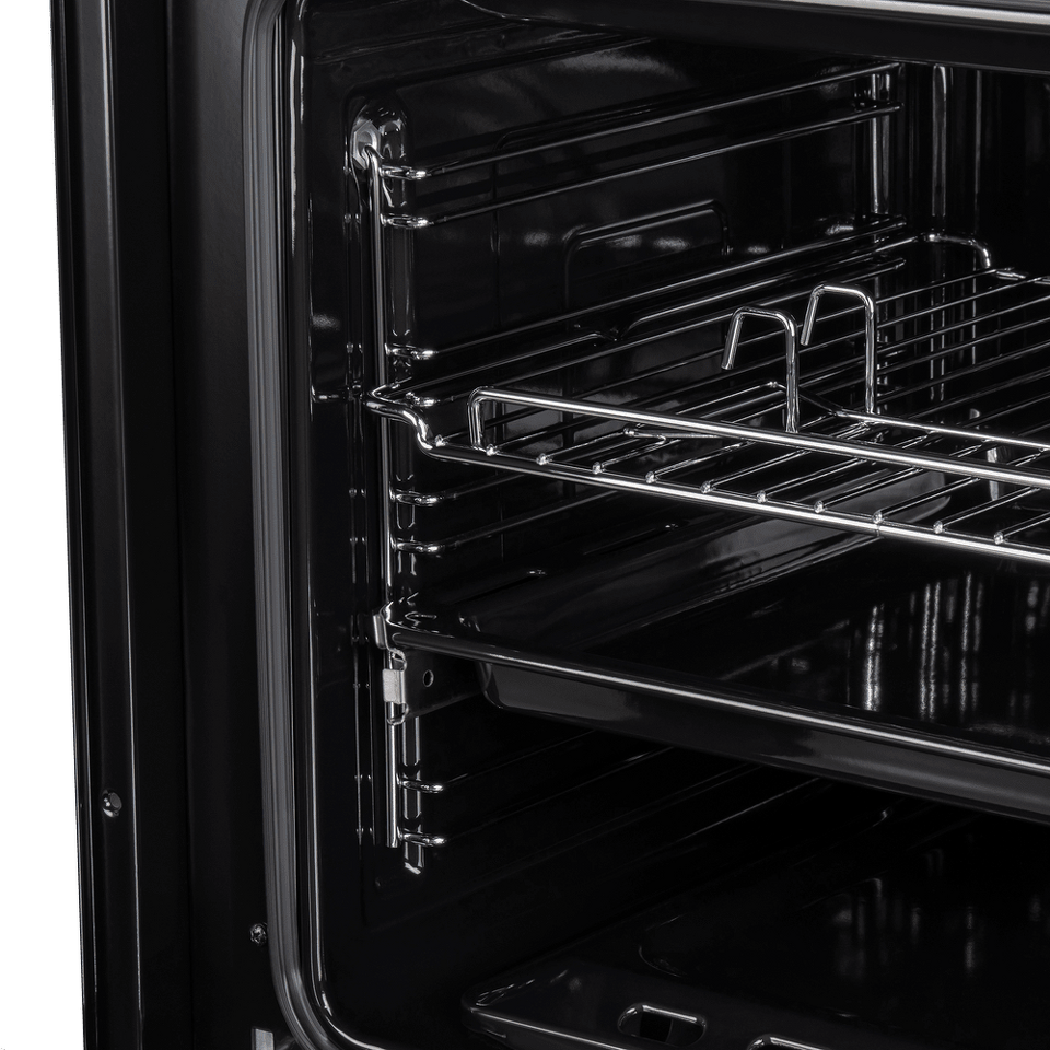 Объем 60 л при стандартной ширине 60 см позволяет готовить одновременно несколько блюд, разместив решетку или противень на одном из 5-ти уровней боковых направляющих. Один уровень оснащен удобными телескопическими направляющими. Внутреннее покрытие камеры выполнено из специальной легкоочищающейся эмали черного цвета.